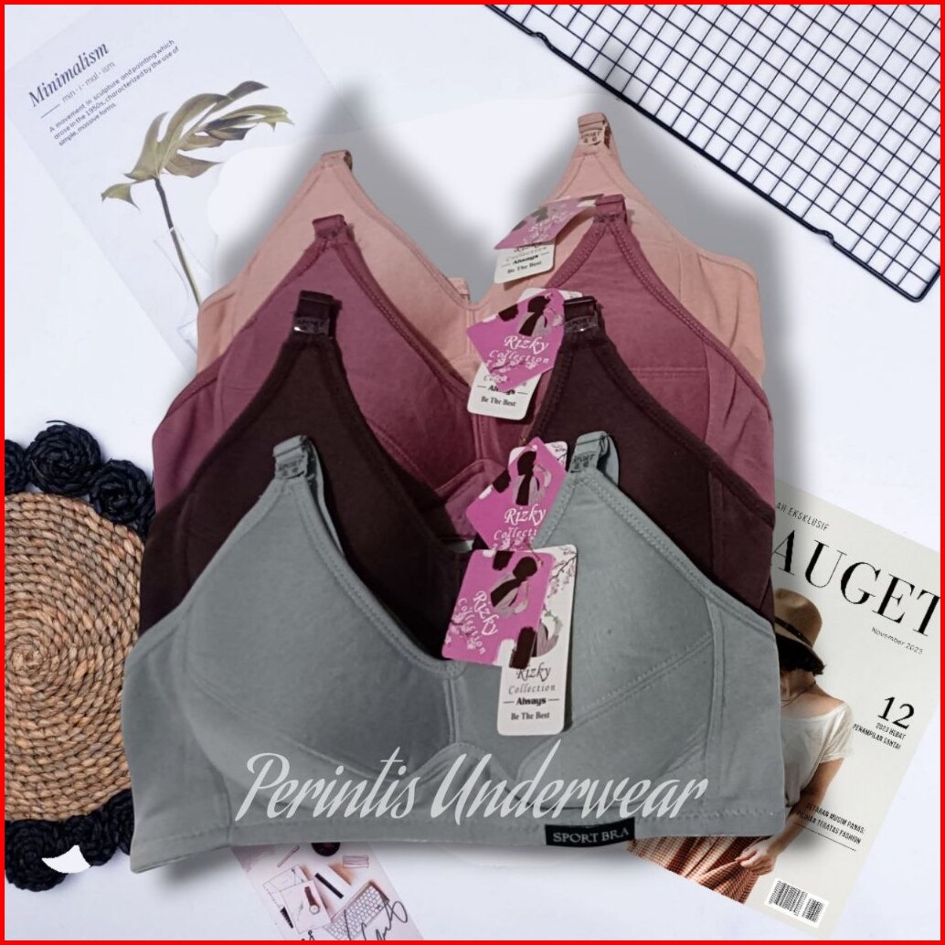 6 Pcs 3pcs Pcs Bra Jumbo Wanita Tanpa Kawat Busa Tipis Full Katun Sport Bra Cup Besar Kait 2
