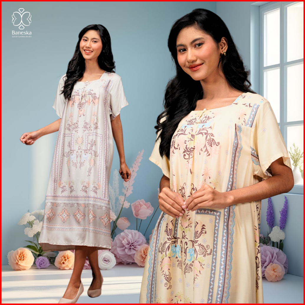 New Baneska Daster Rayon Premium Busui Reilyn Series Daster Warna Pastel Bunga Dress Kancing Adem Baju Tidur Pendek