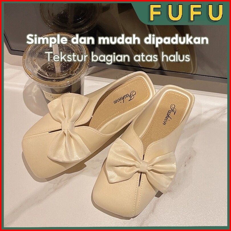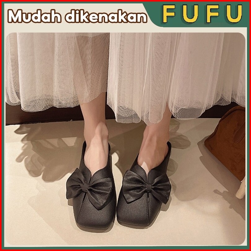 Fufu Sandal Selop Wanita Wanita Korean Style Lucu Tertutup Dengan Pita Sandal Slop Wanita Sandal Wanita Sandal Wanita Te