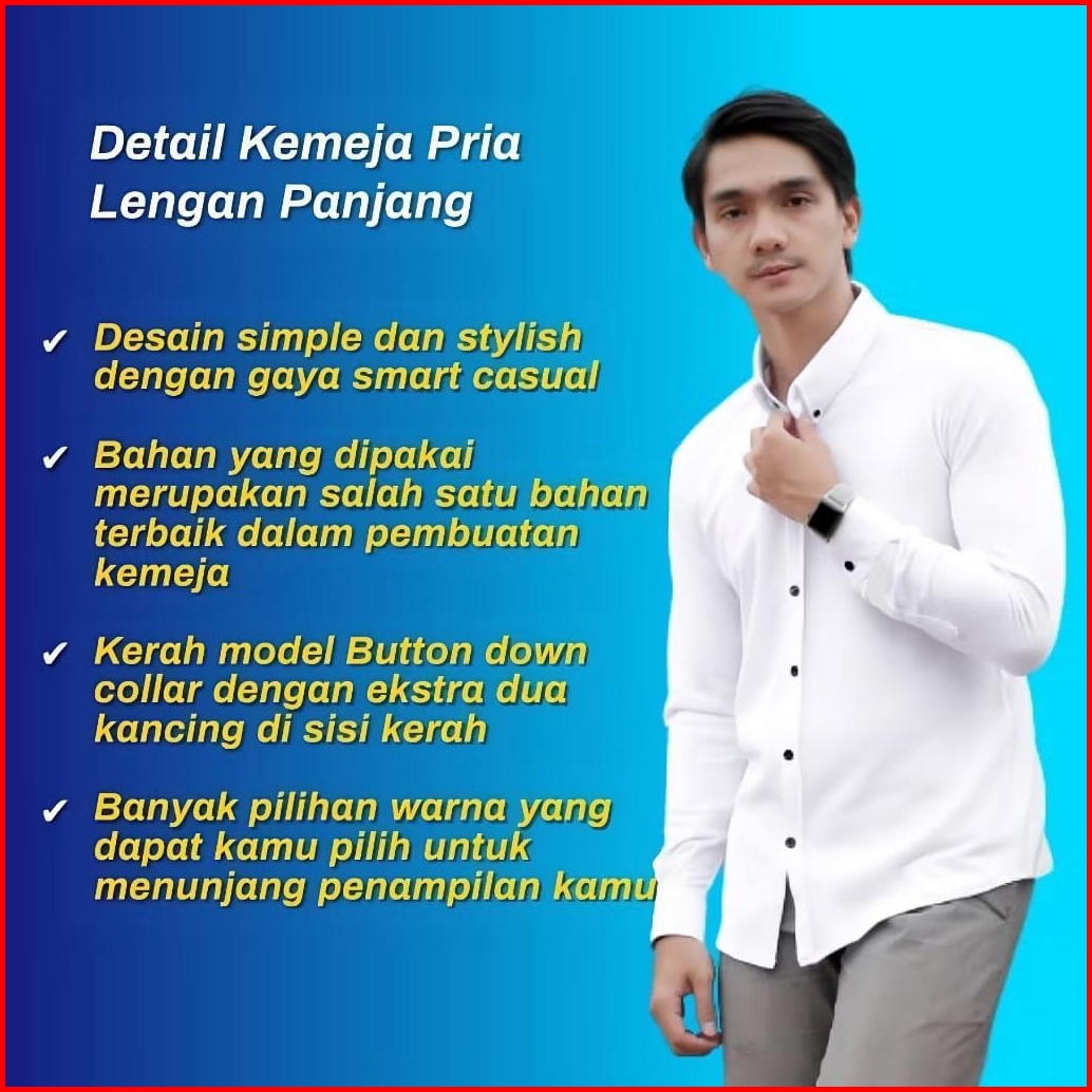 Promo Isi 2 Pcs Kemeja Pria Polos Lengan Panjang Slimfit Formal Kasual Kerja Ngampus Nongkrong