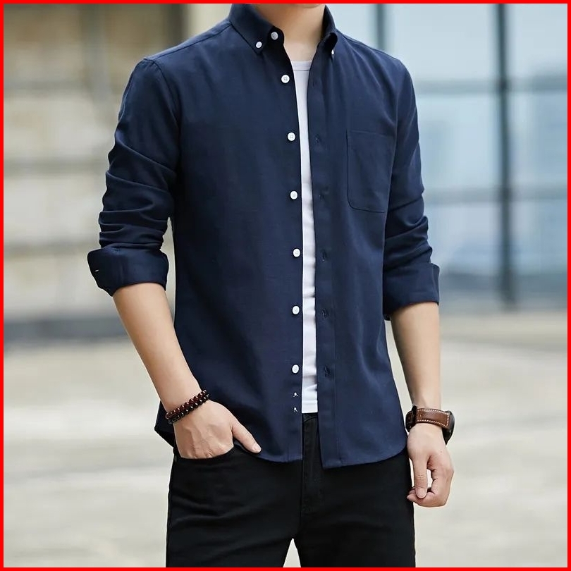Kemeja Hitam Polos Cowok Keren Casual Putih Navy Marron Abu Lengan Panjang