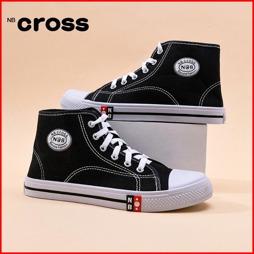 Nbcross Sepatu Sekolah Bertali Sepatu Pelajar Hitam Putih Sepatu Kanvas Ukuran 29-43