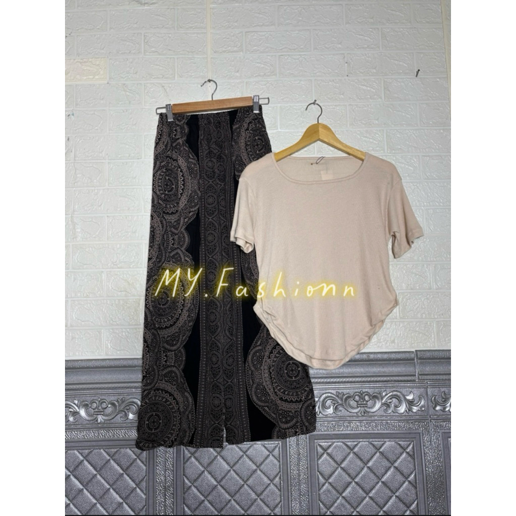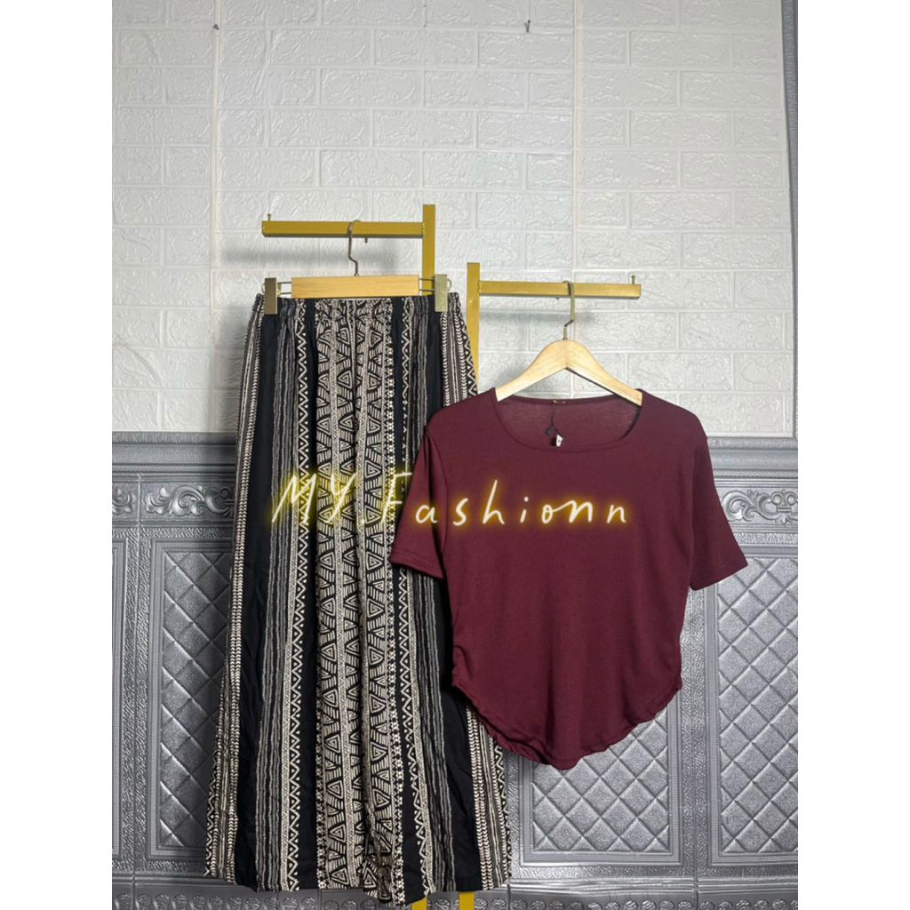 SET Celana Kulot Rayon Hommy Viscose/Kaos Square Neck Lengan Pendek