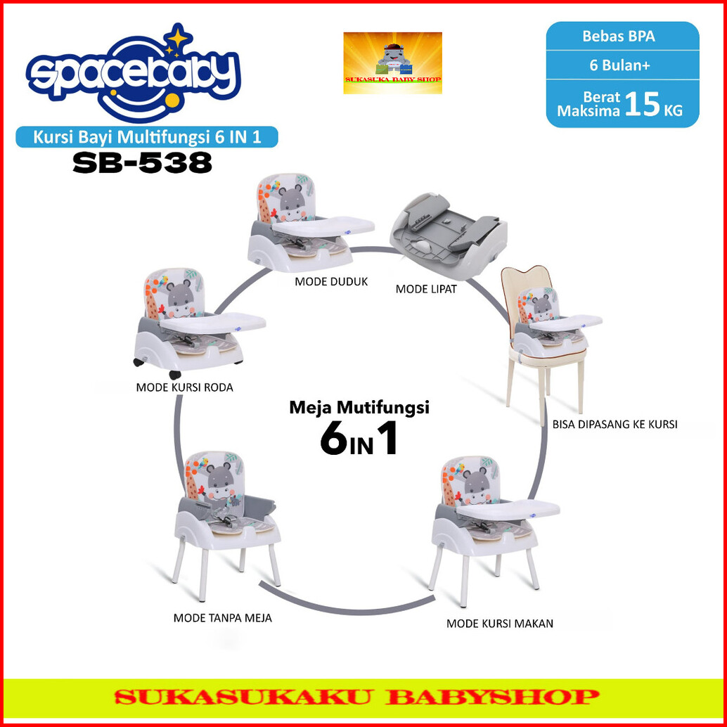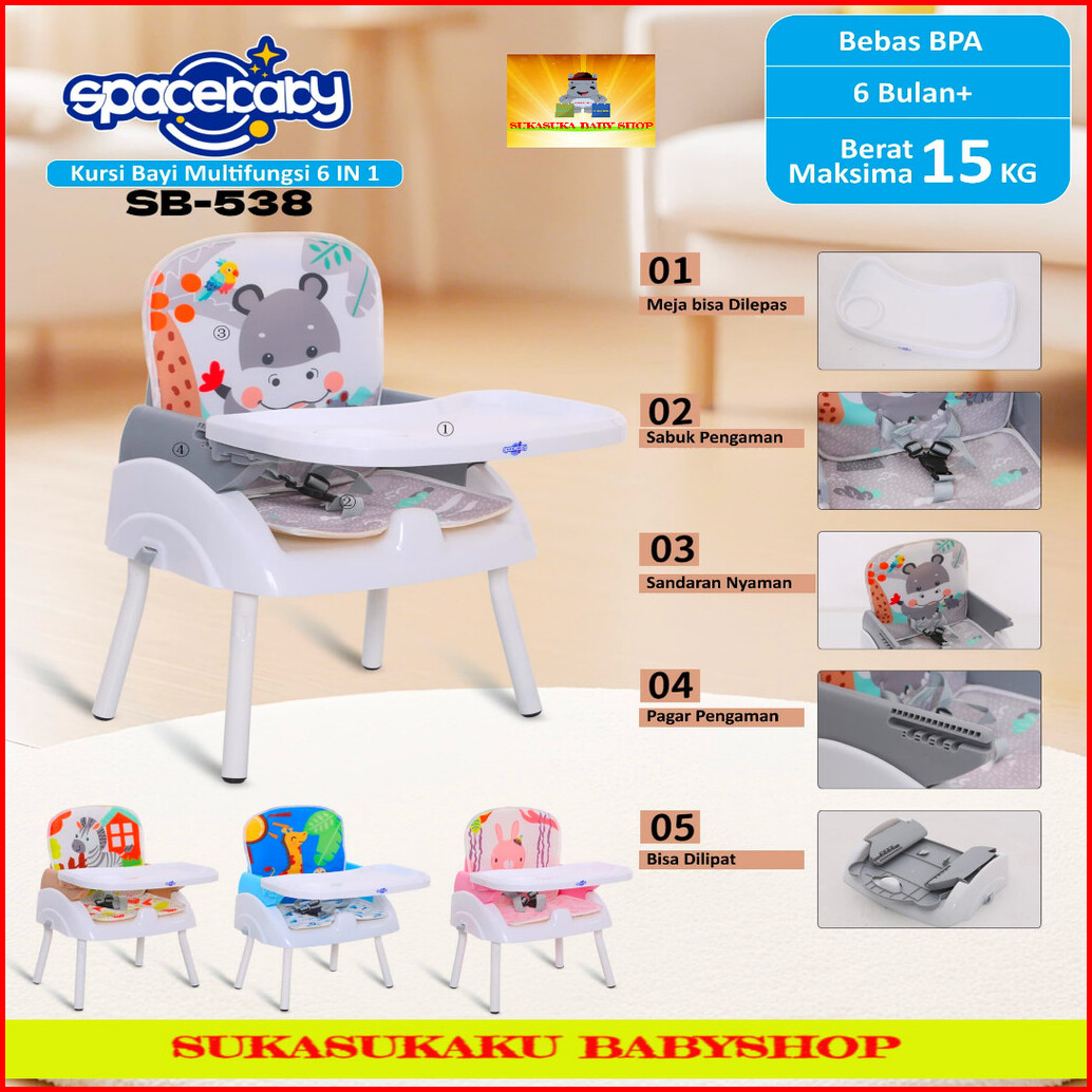 Booster Kursi Makan Bayi Spacebaby Sb 538 Balita Anak Folding Seat Chair Baby Dengan Sabuk Pengaman Tempat Botol Minumbe