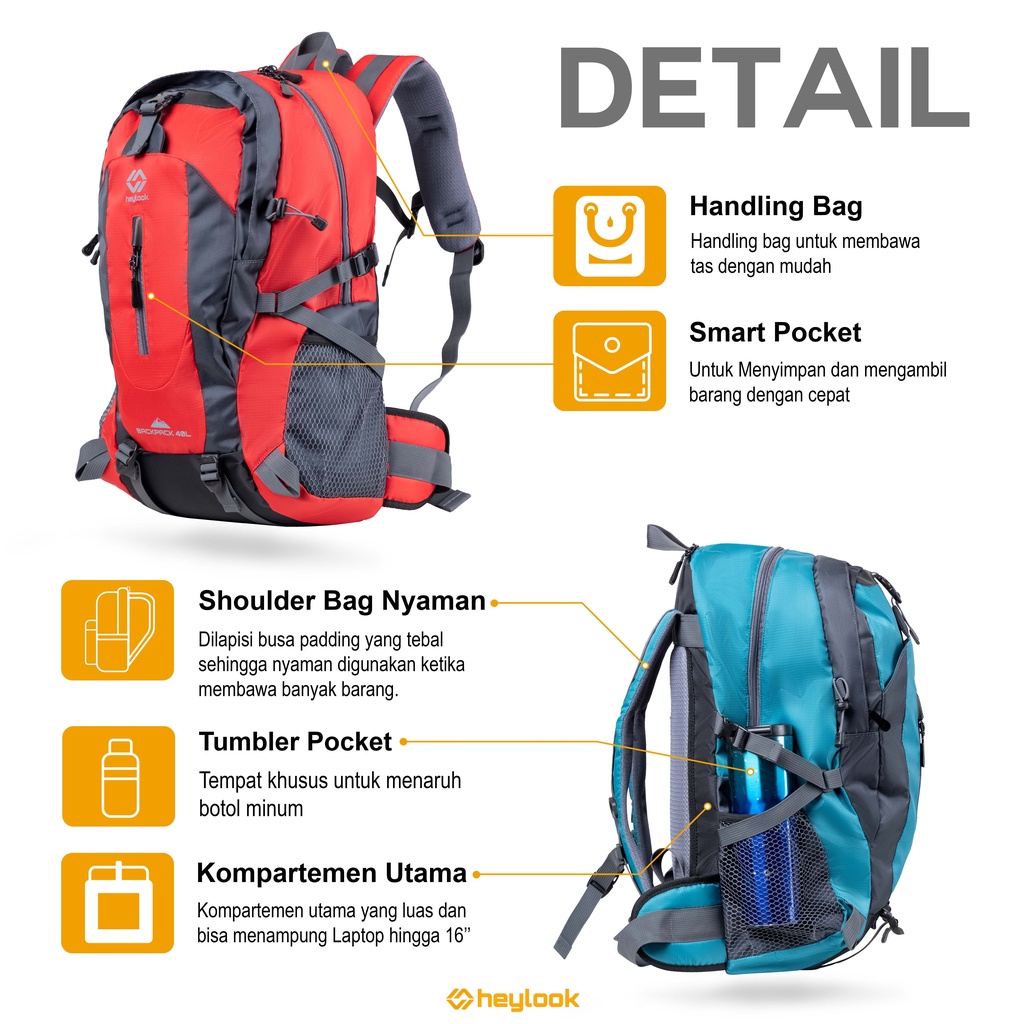 HEYLOOK Official - Tas Ransel Gunung BORNEO Backpack Carrier Hiking Camping Outdoor 40L Tas Travelling Tas Travel Tas Ba