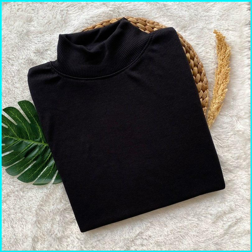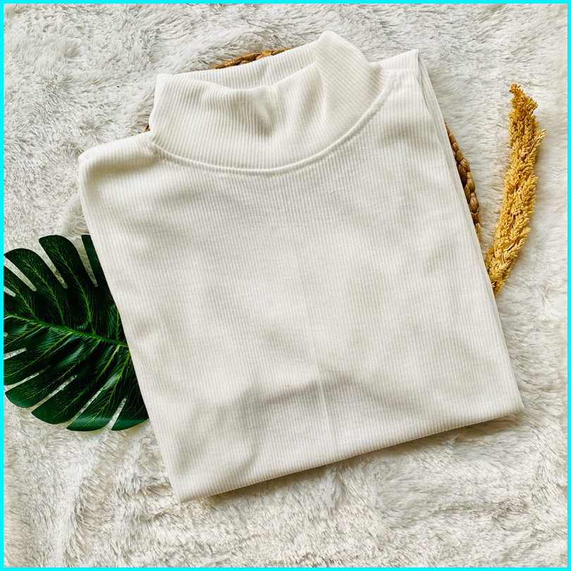 Kaos Turtleneck Lengan Pendek Atasan Wanita Turtleneck Viral Korea