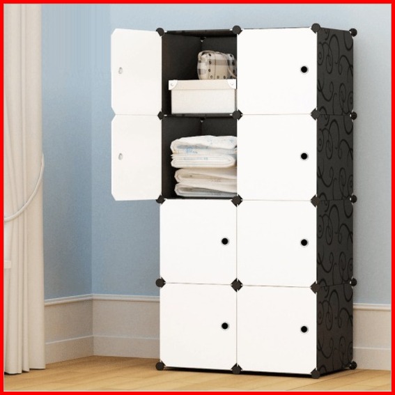 Shining Beauty Lemari Pakaian Plastik Multipintu Putih Lemari Portable Rak Bisa Anti-debu
