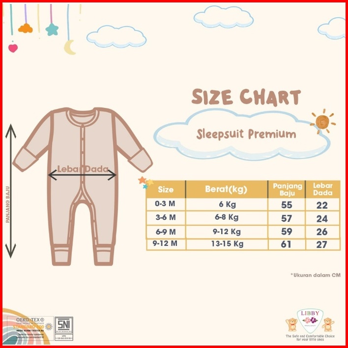 Libby Sleepsuit 0-12m 1pcs Sleepsuit Premium Print Libby Boy Girl Cbks Sdi