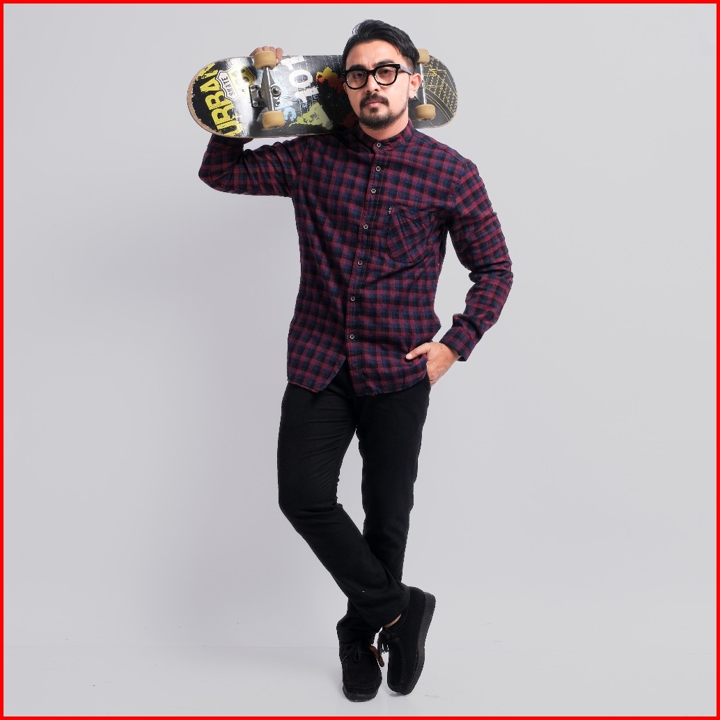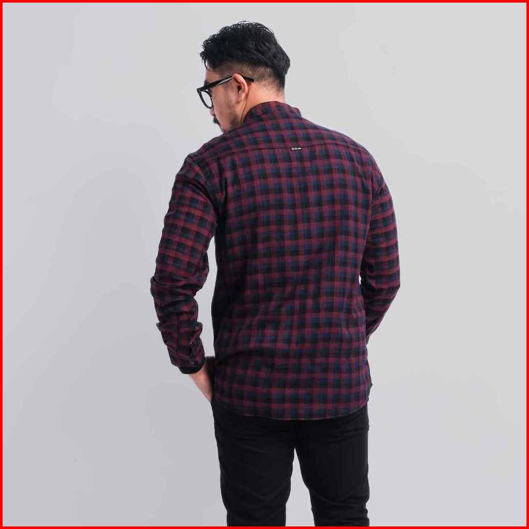 Dgm Kemeja Flanel Pria Kerah Sanghai Koko Lengan Panjang Premium Merah Navy Hitam 2994