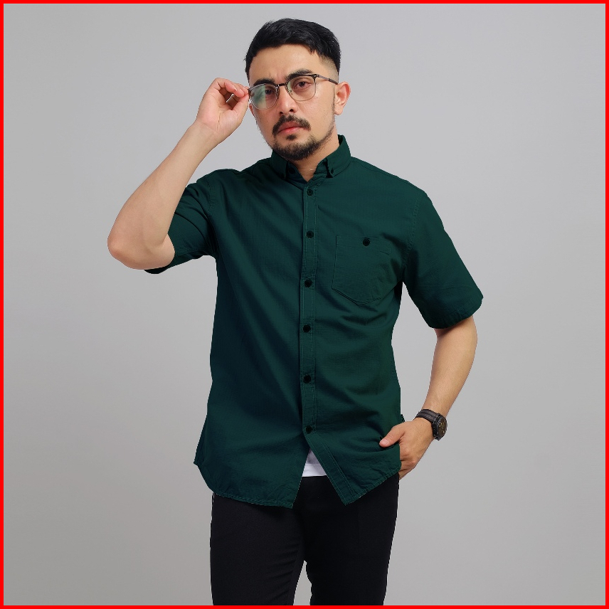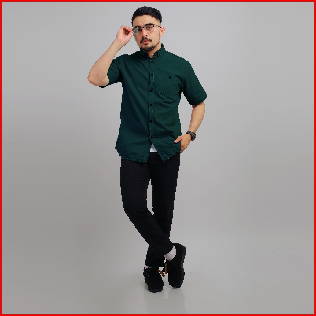 Dgm Kemeja Pria Basic Polos Lengan Pendek Hijau 1012