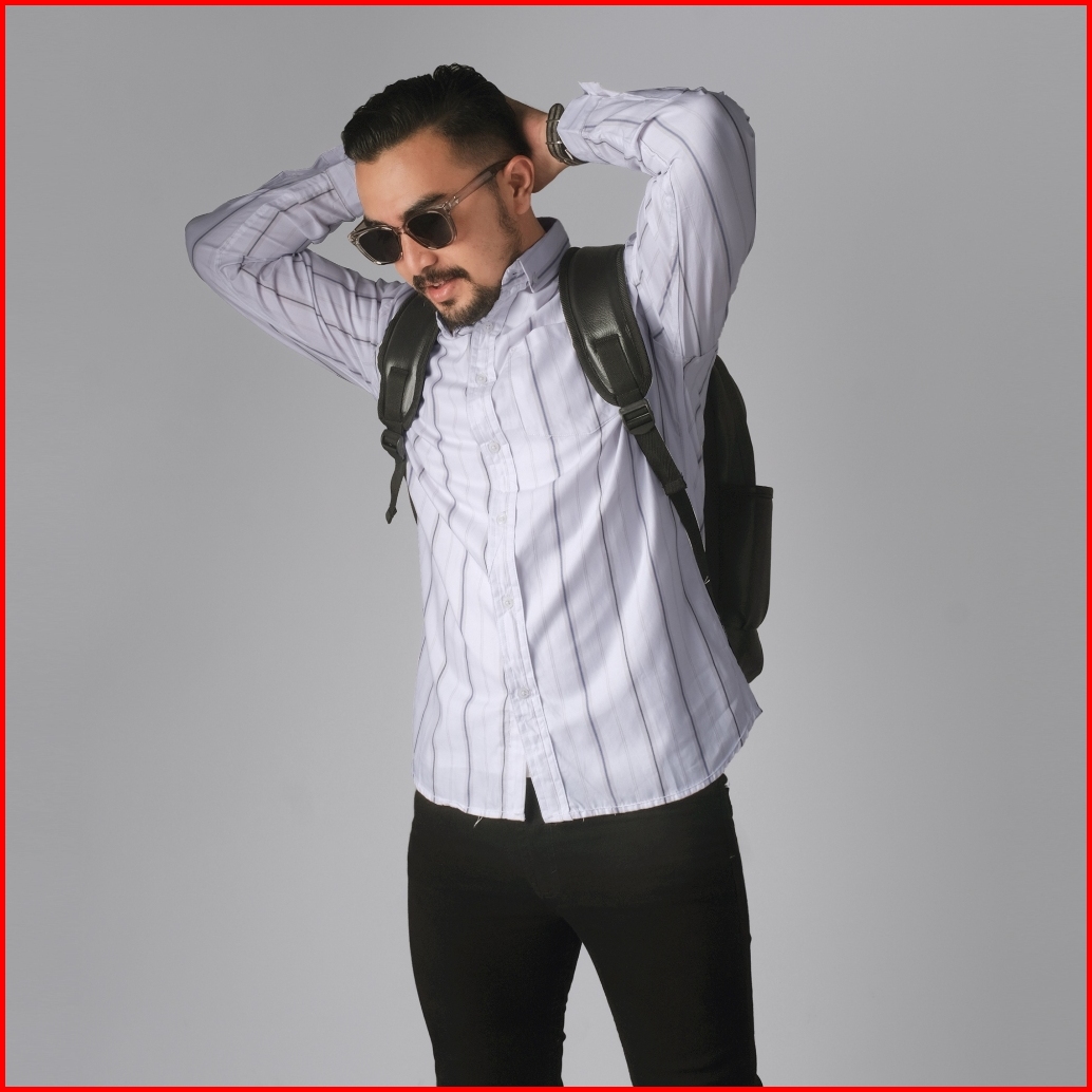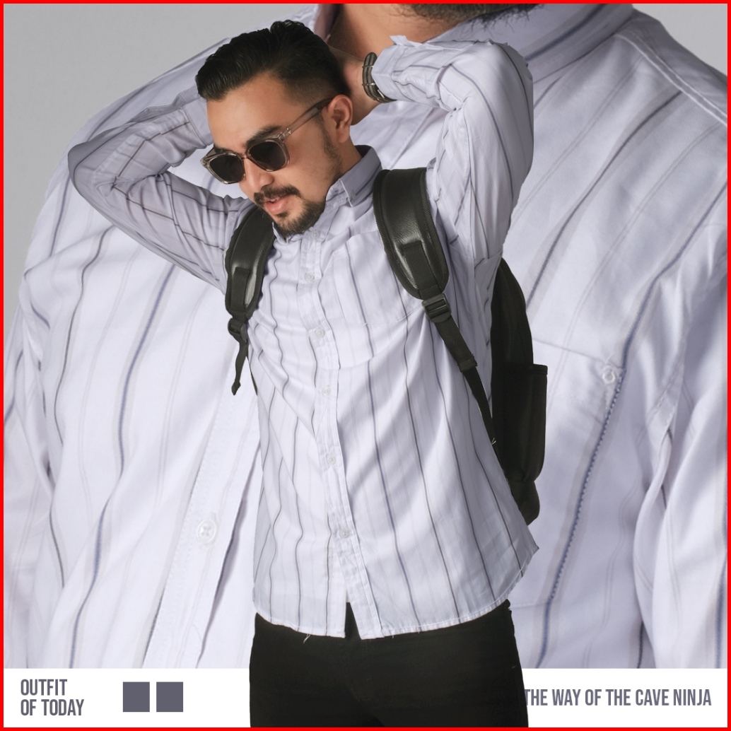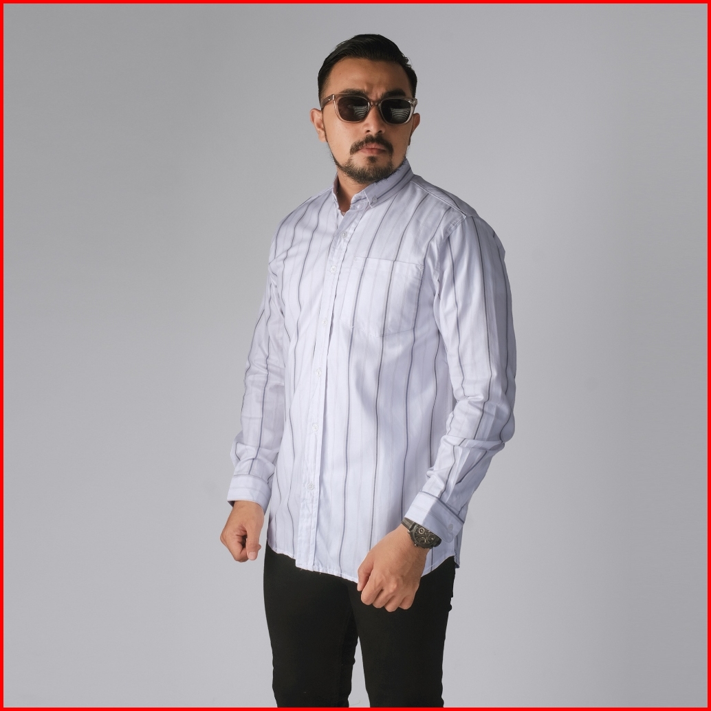 Dgm Kemeja Pria Salur Lengan Panjang Premium Putih Garis Hitam Salur Besar 2536