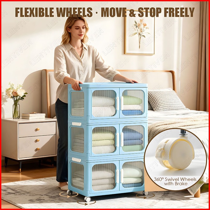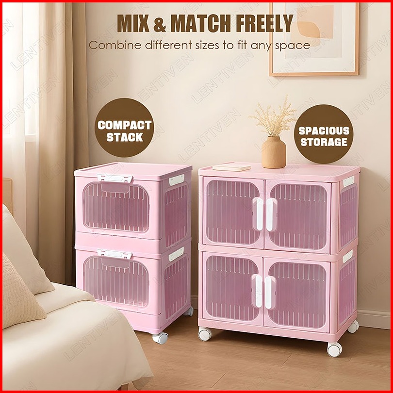 Lentiven Lemari Plastik Susun Besar Lemari Pakaian Anak Bayi Rak Baju Multifungsi Organizer Hemat Ruang Katrol Senyap An
