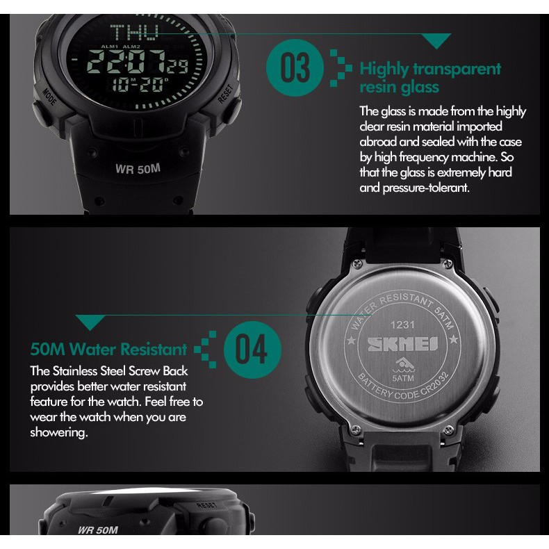 Jam Tangan Pria Digital Skmei 1231 ArmyGreen Water Resistant 50m