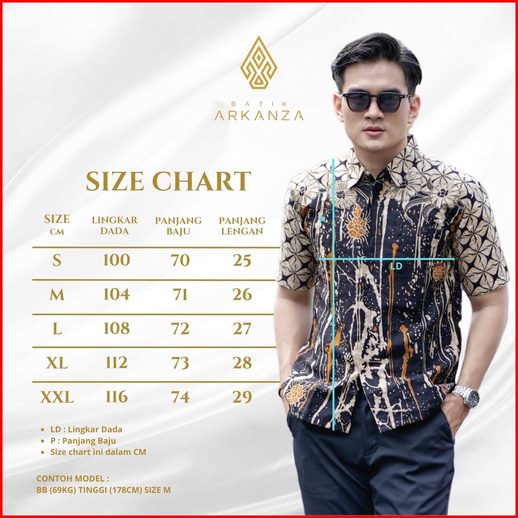 Batik Arkanza Motif Pradipta Adji Pendek Kemeja Baju Batik Premium Pria Cowok Laki Laki Slimfit Full Lapis Furing Tangan