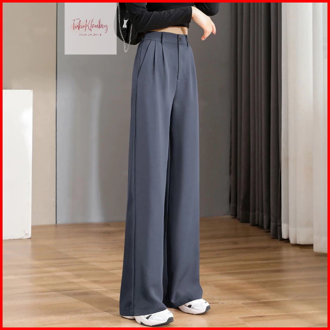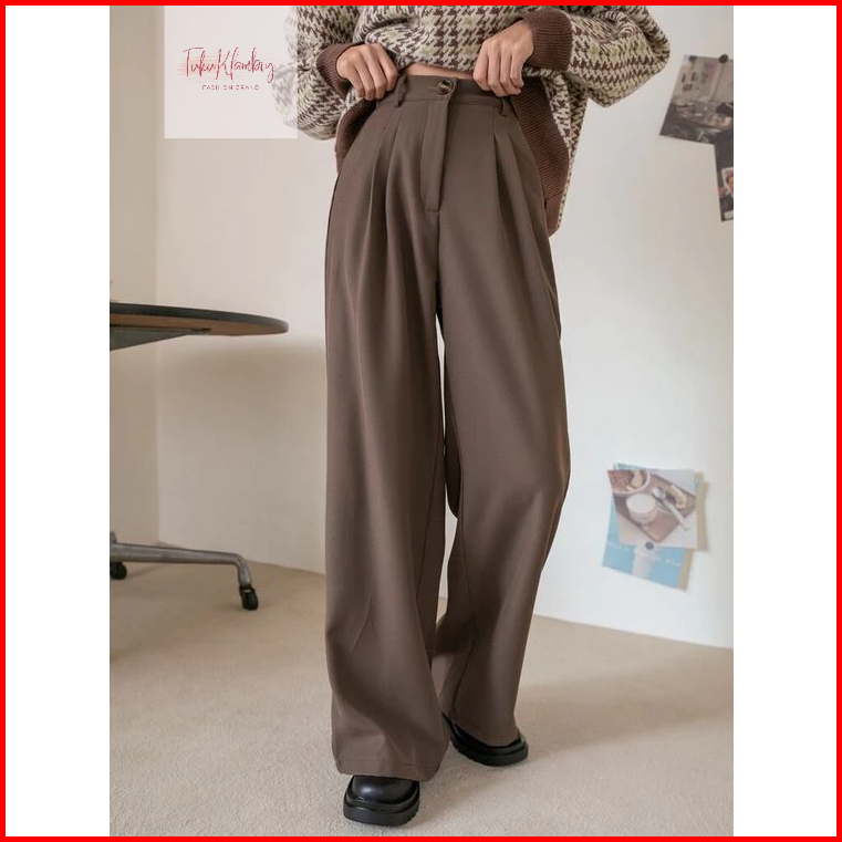 Tukuklambiy Big Loose Pants Trousers Wanita Celana Anti Kusut Kantor Formal Kulot Highwaist