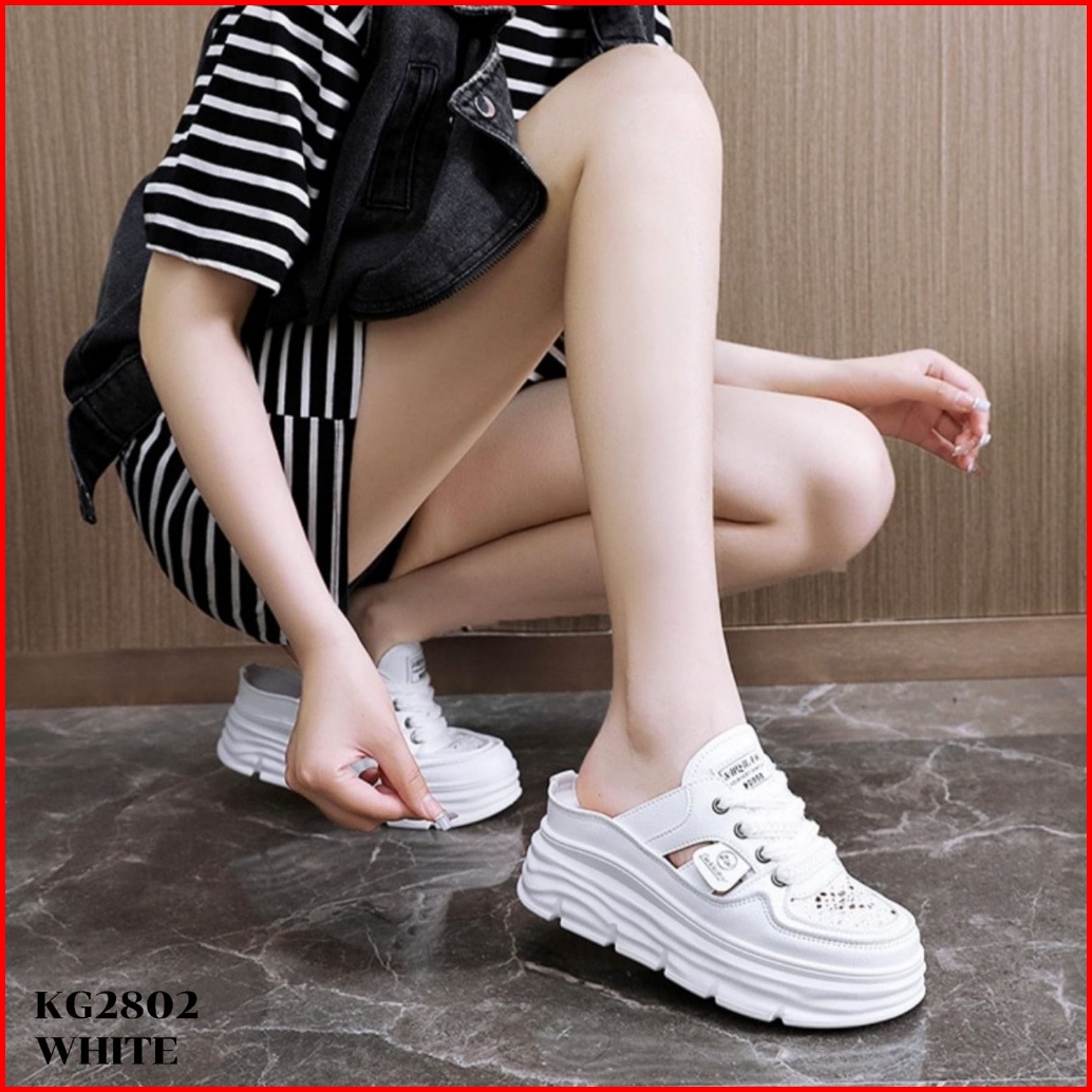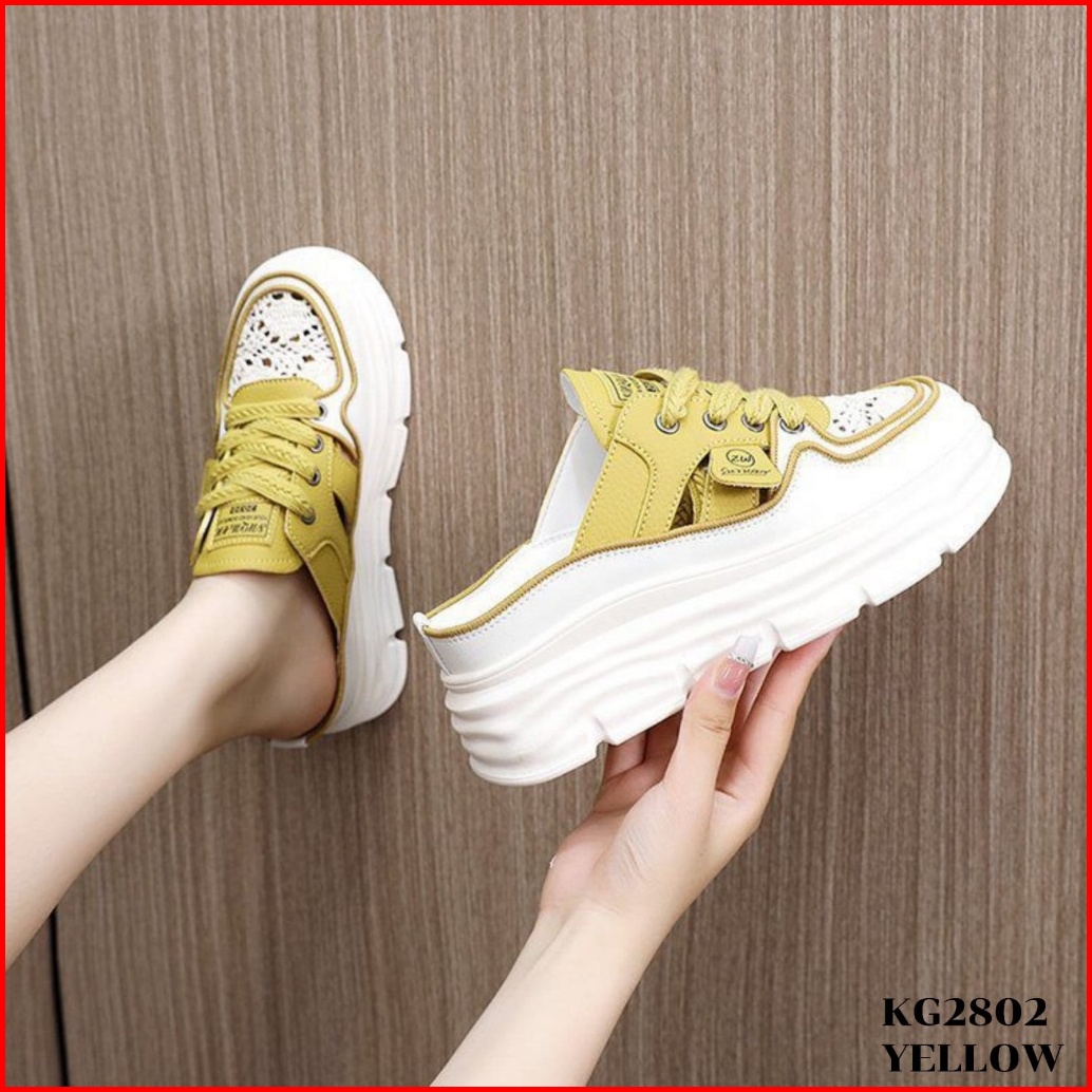 Prf Sepatu Sneakers Wedges Tingi 6.5cm Khaki White Yellow 36-40 Slop Fashion Ala Korea Kg2802