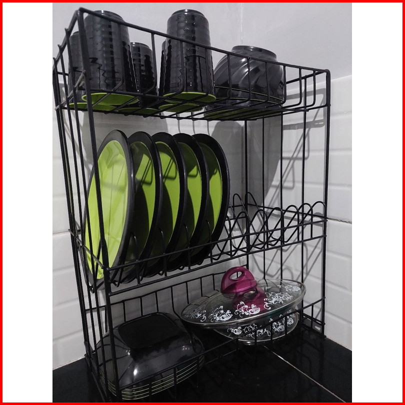 Rak Piring Gelas 3 Susun Hitam Rak Piring Rpk 03 - Rak Anti Karat - Rpk 03 - Rak Wastafel Dapur- Rak Piring Viral- Rak P