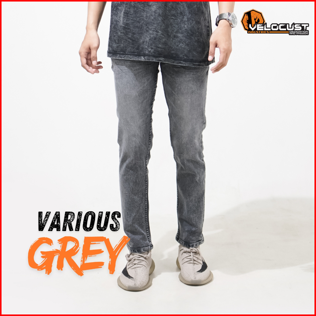 Velocust - Celana Jeans Slimfit Wringkle Various Grey