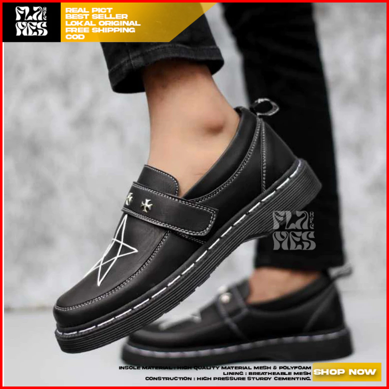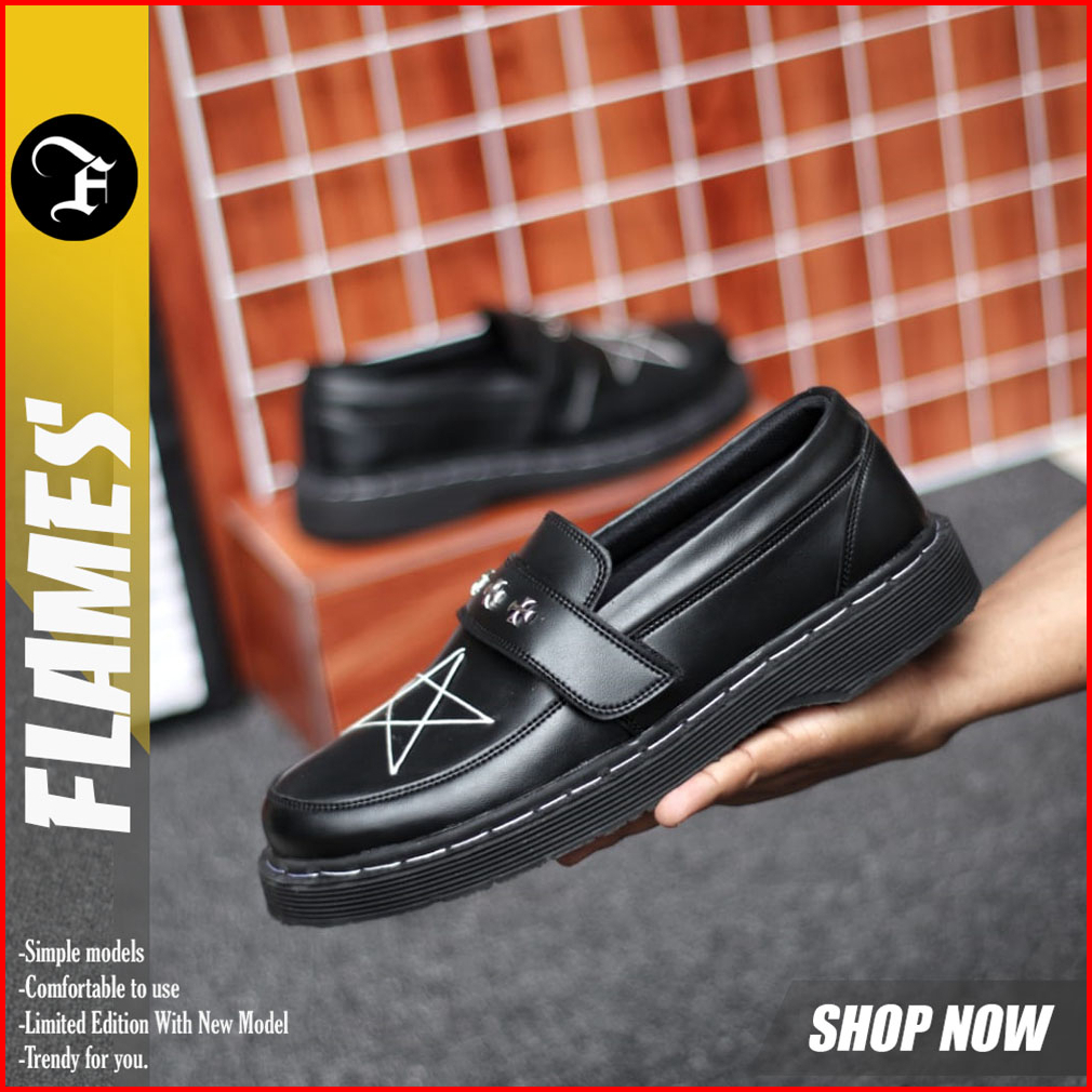 Flames Akesi - Sepatu Loafers Docmart Pria Casual Formal Pantofel Kerja Pria Hitam