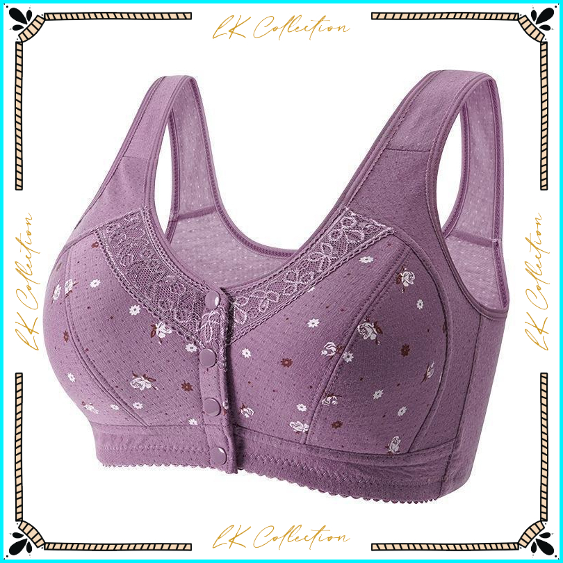 Bra Wanita Tanpa Busa Tanpa Kawat Pengait Depan Motif Floral Tali Tebal Elastis