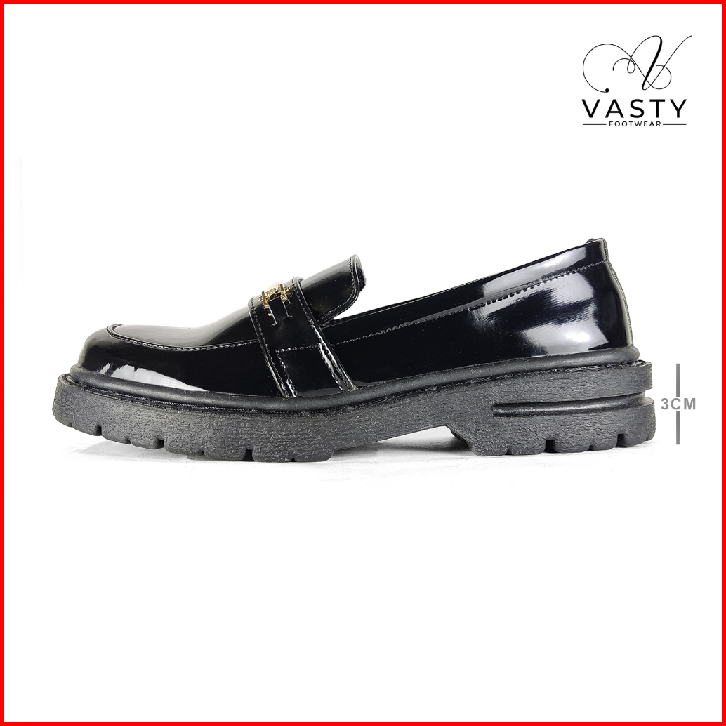 Sepatu Wanita Docmart Loafers Chain Glosy Black Terbaru Mary Janes St. 49