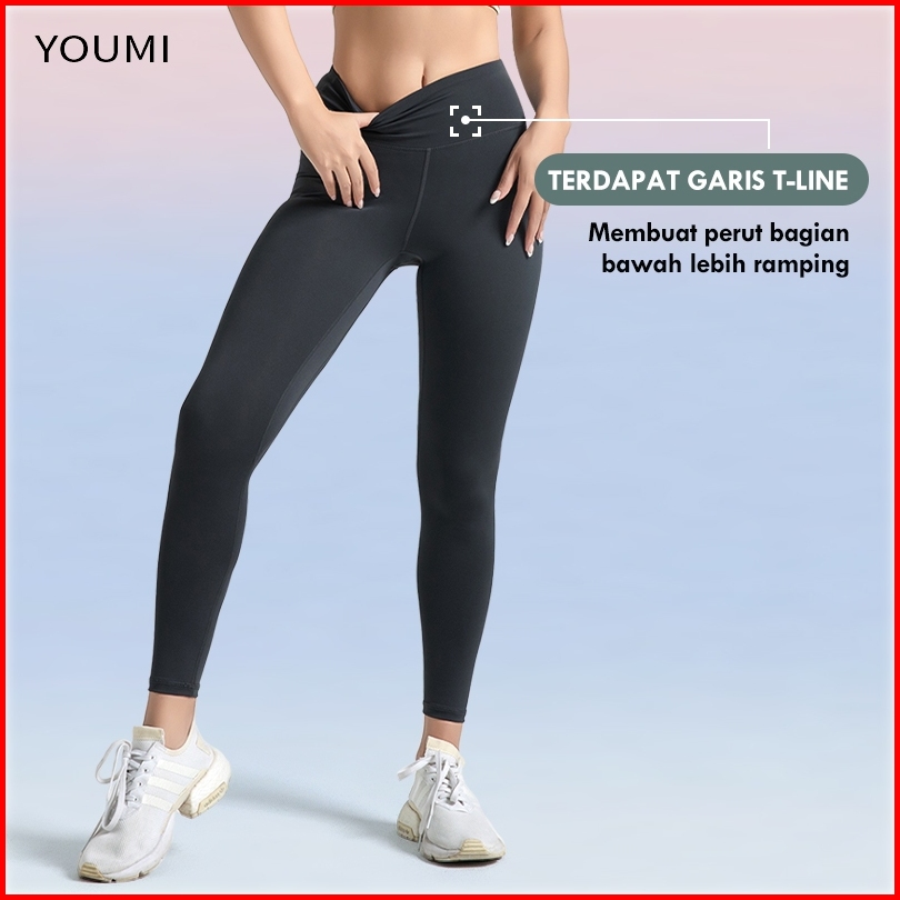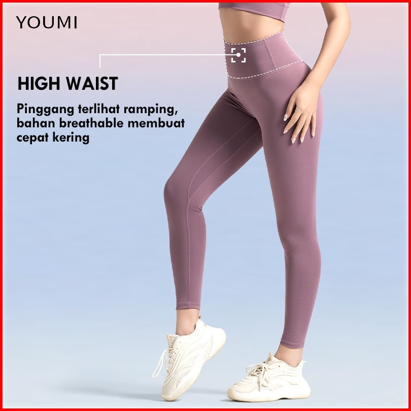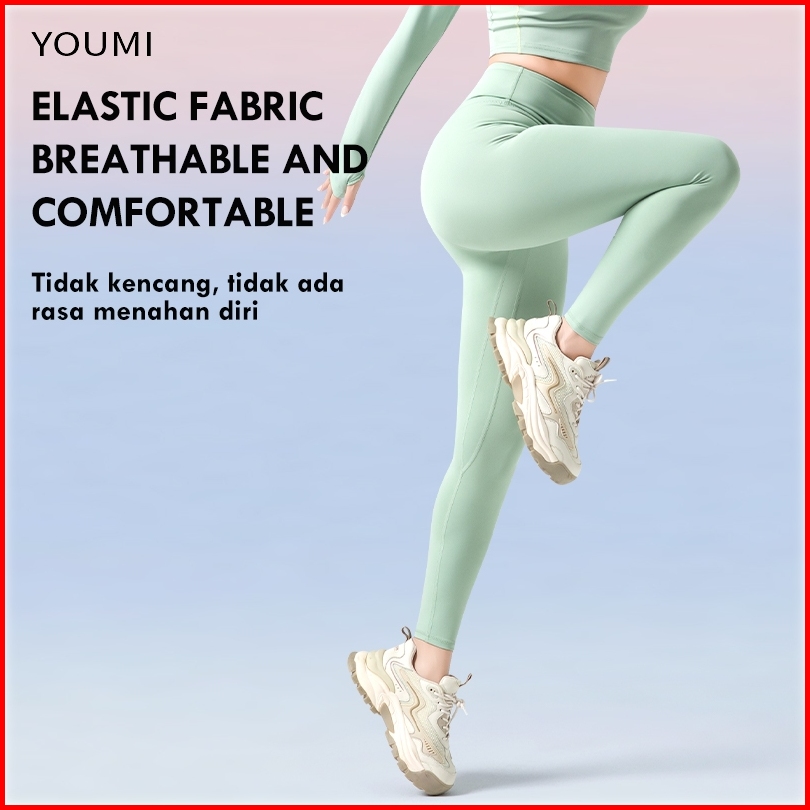 Youmi Celana Gym Legging Olahraga Wanita Highwaist Training Panjang Sport Yoga Tennis Lari Pilates Celana Senam Wanita A