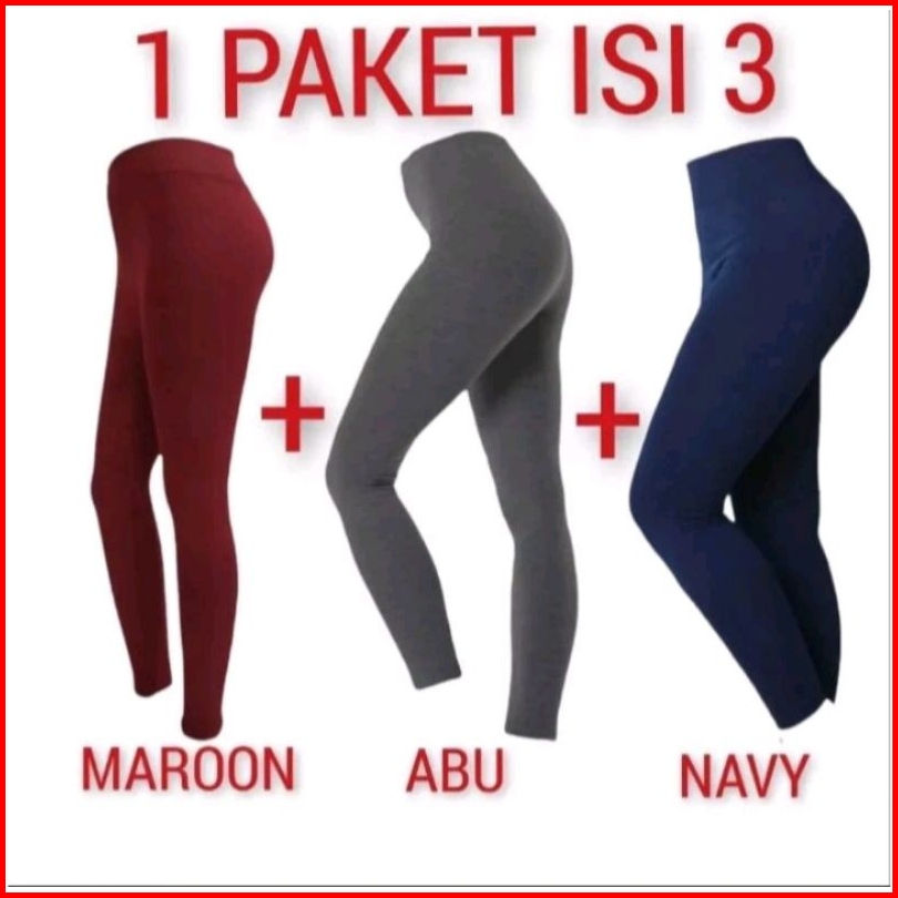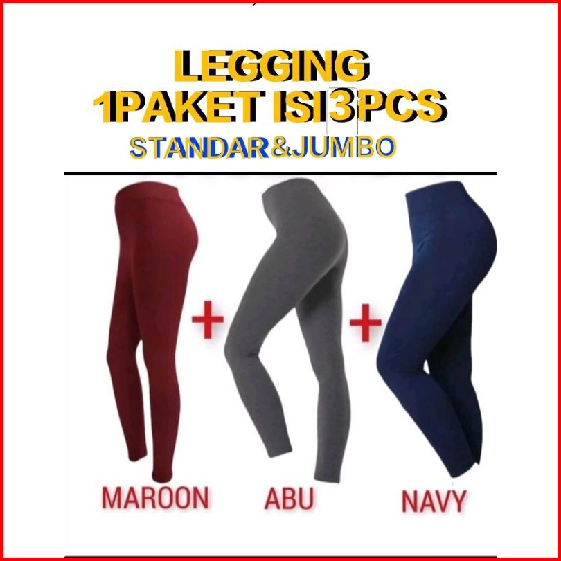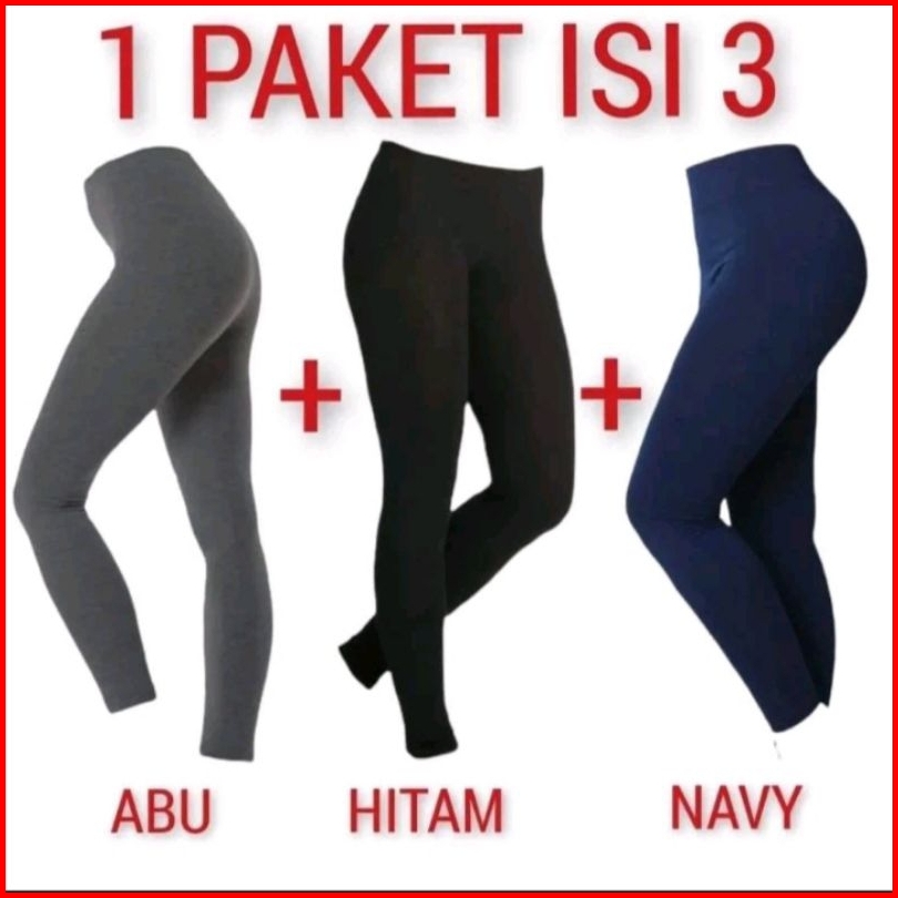Legging Panjang 1.paket Isi 3.pcs Standar Jumbo Spandek Licin