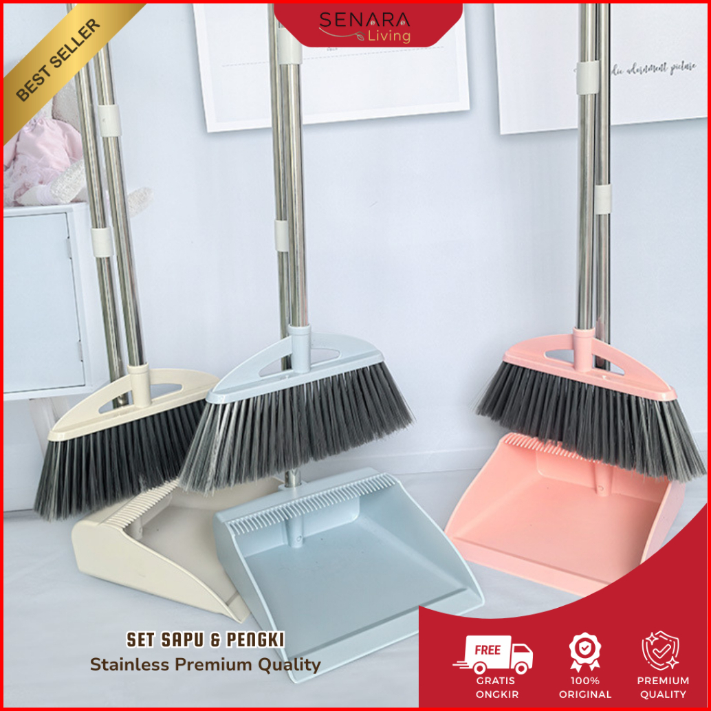 Senara Living Set Sapu Pengki Multifungsi Dbcs03 Polipropilena Stainless Steel 450g 80x26.5cm