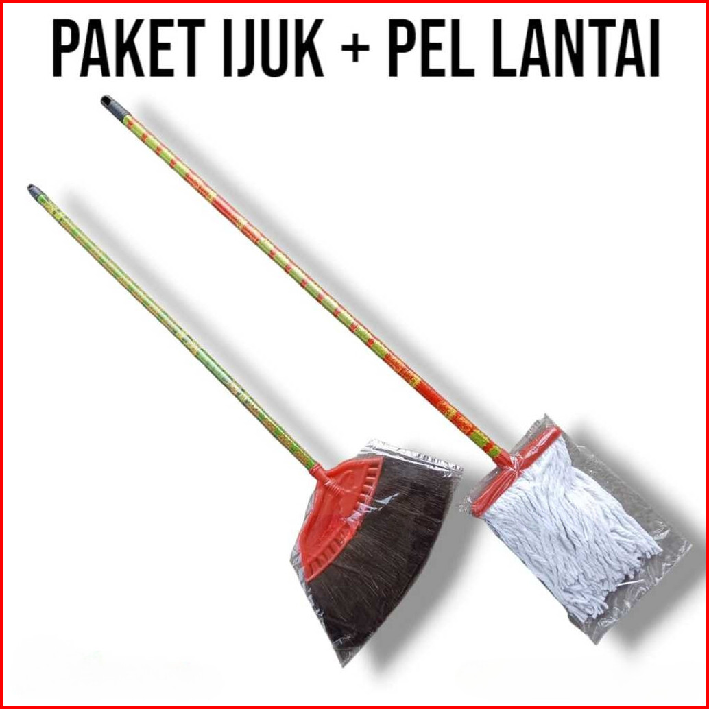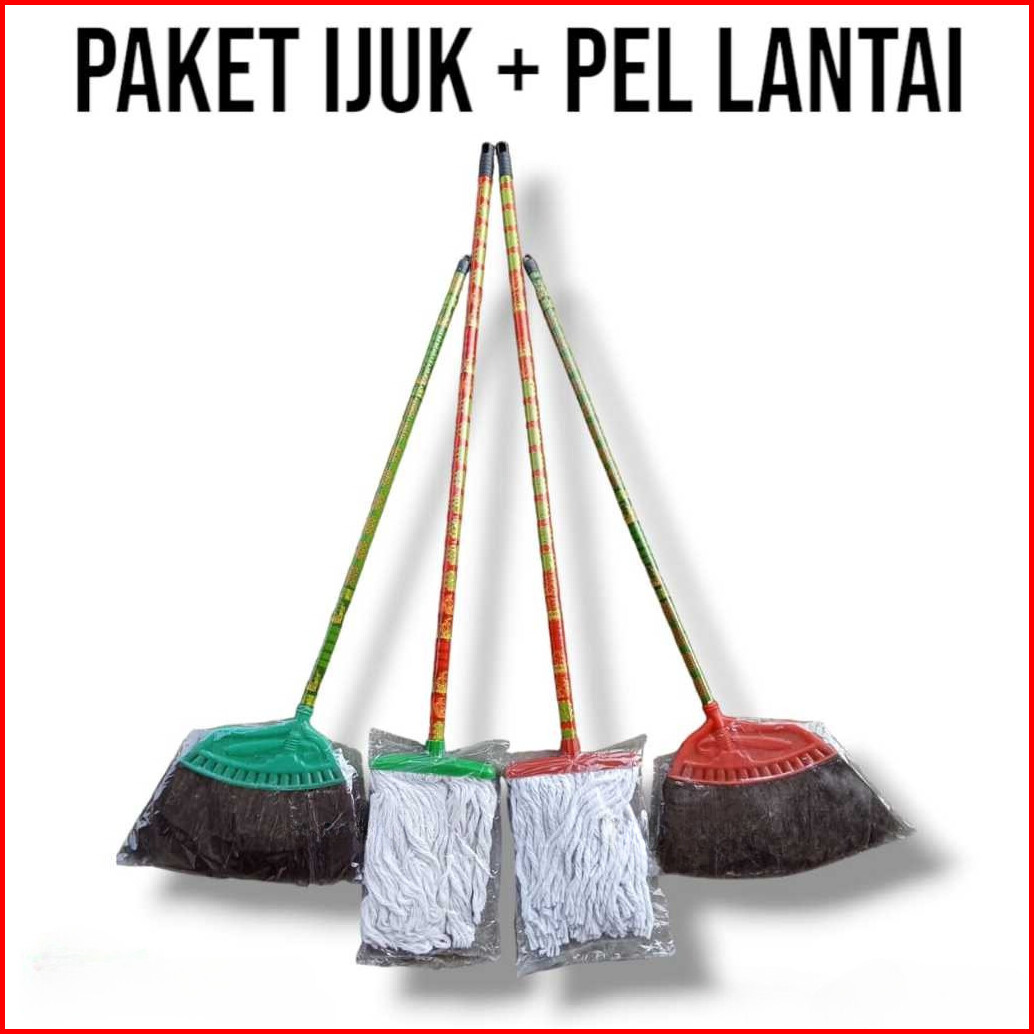 Ap Paket Sapu 2 In 1 Sapu Ijuk Dan Pel Lantai Murah Gagang Kayu