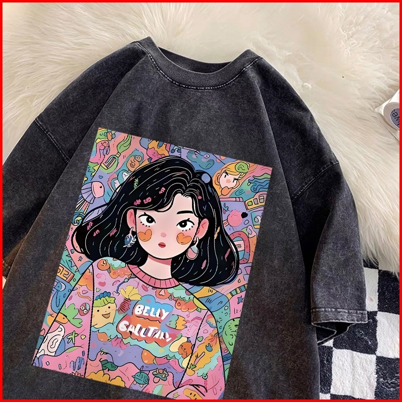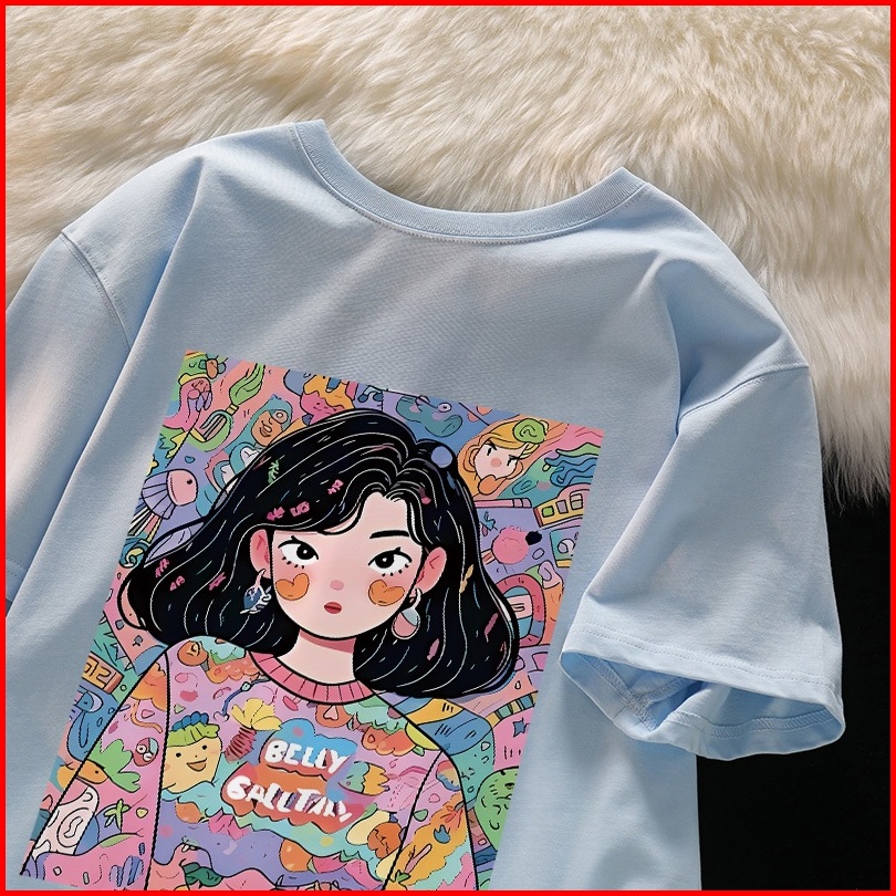 Forteid T-shirt Lengan Pendek Baju Kaos Oversize Wanita Baju Kaus Wanita Korea Baju Atasan Wanita Terbaru Graffiti Girl