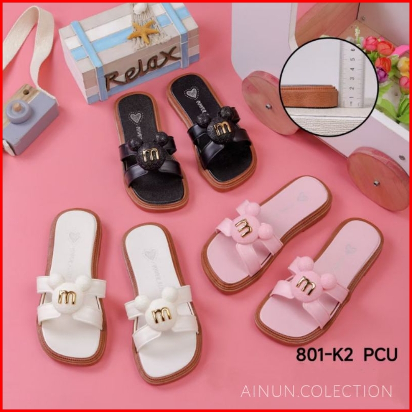 Sandal Slop Anak Perempuan Import Sandal Anak Fashion 801 Minie Sendal Flat Alina Anak Wanita Terbaru Kaki 24-35 Sendal