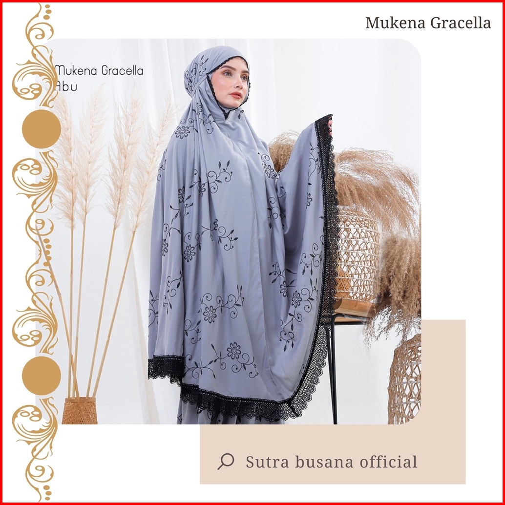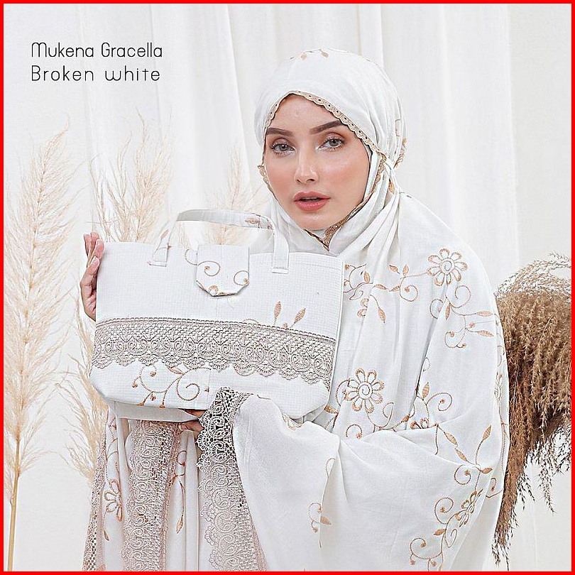Pusat Bordir Tasikmalaya - Mukena Dewasa Rayon Bordir Renda Zipper Gracella