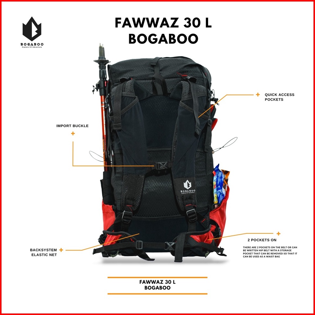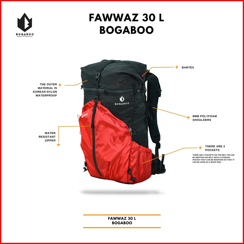 Bogaboo Fawwaz Backpack Ultralight Frameless 30 L Waterproof - Tas Ultralight Gunung - Tas Ransel Ul - Tas Hiking Anti A