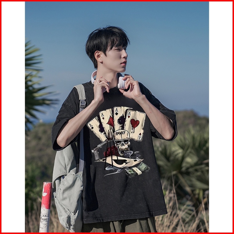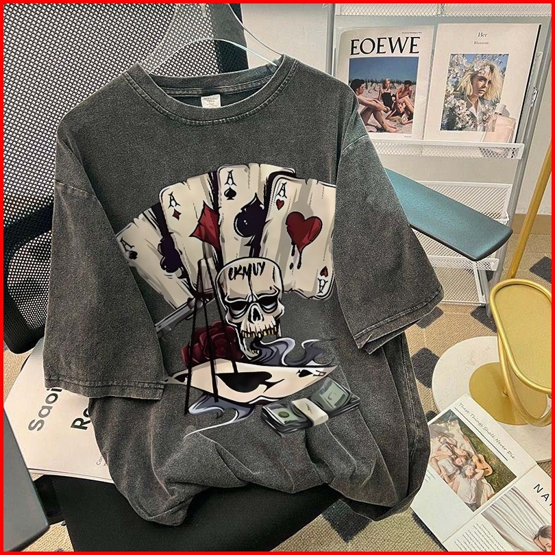 Marlacoeur Cetak Poker Kaos Cowok Distro Original 100 Kaos Pria Premium Tebal Kaos Oversize Pria Kaos Washed