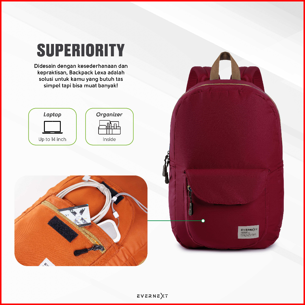 Evernext - Tas Sekolah Wanita Backpack Lexa Tas Ransel Cewek Tas Kuliah Tas Punggung Laptop Wanita
