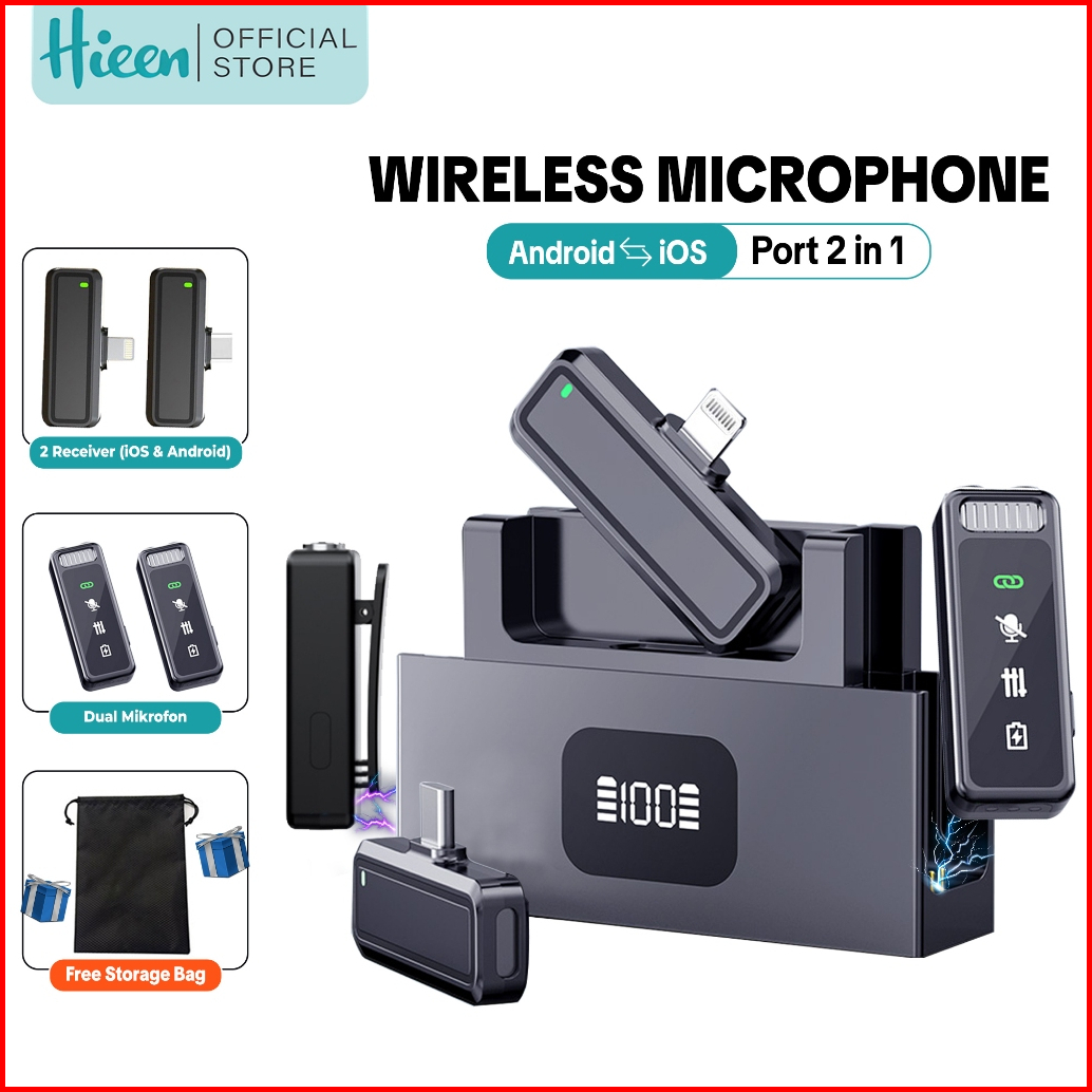 2in2 Hieen Wireless Microphone 2in2 Type C Ios Double Microphone Mikrofon Nirkabel Konten Lm24