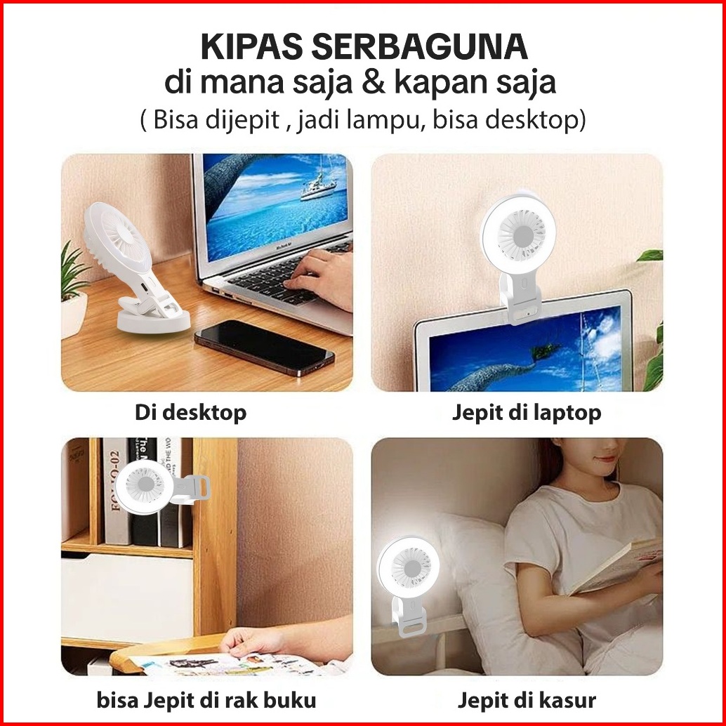 Hieen Lampu Selfie Cantik Jepit 2in1 Kipas Hp Laptop Portable Wireless Bisa Dudukan Desktop F03