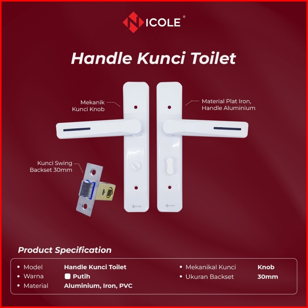Handle Gagang Kunci Pintu Kamar Mandi Toilet 1 Set Warna Nicole