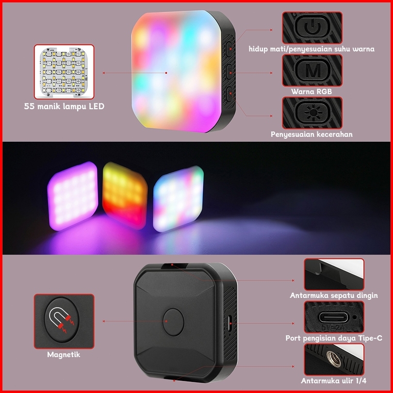 Toorea Lampu Led Rgb Led Clip Mini Magnetic Fill Light Selfie Light Foto Video Handphone Tripod Ring Light Portabel Untu