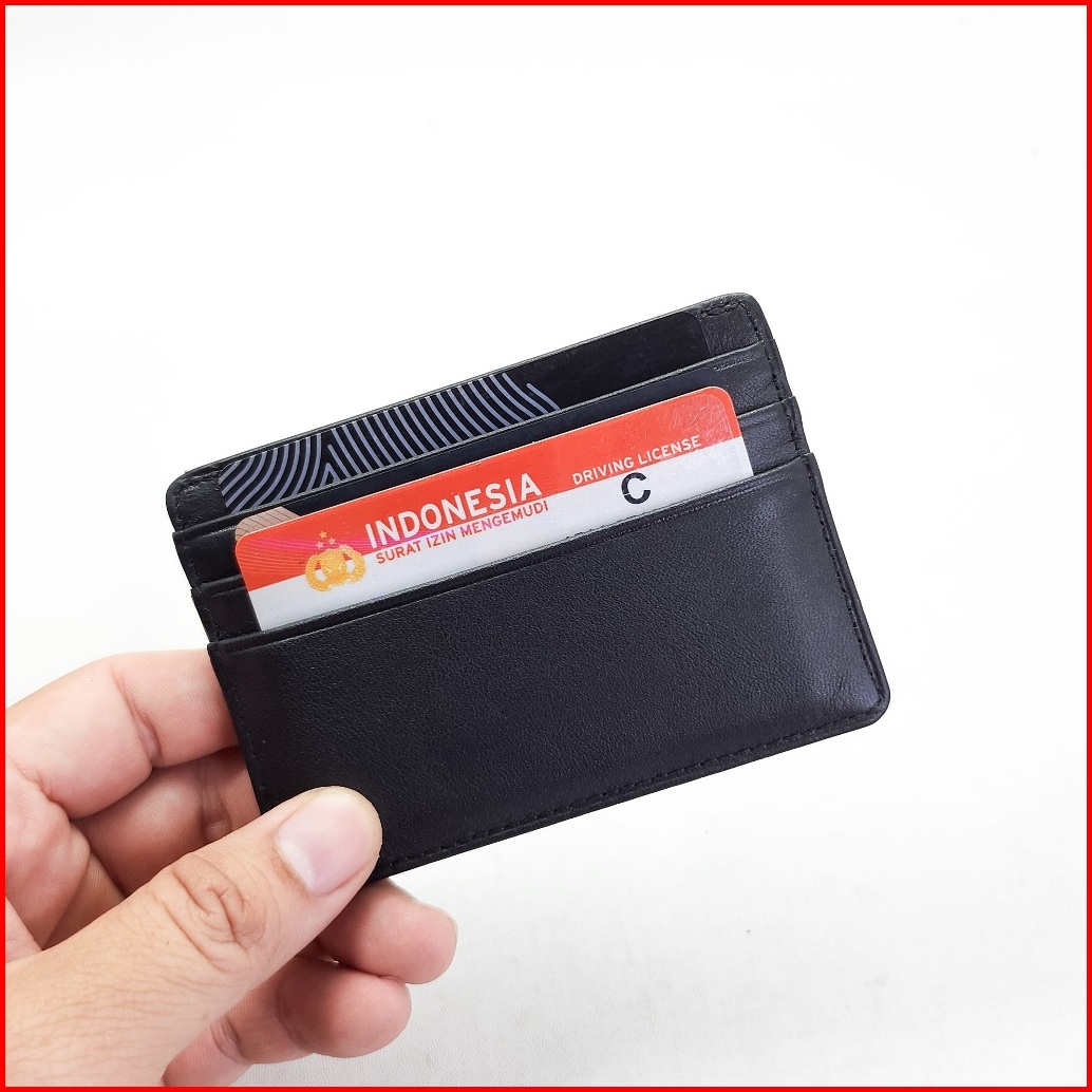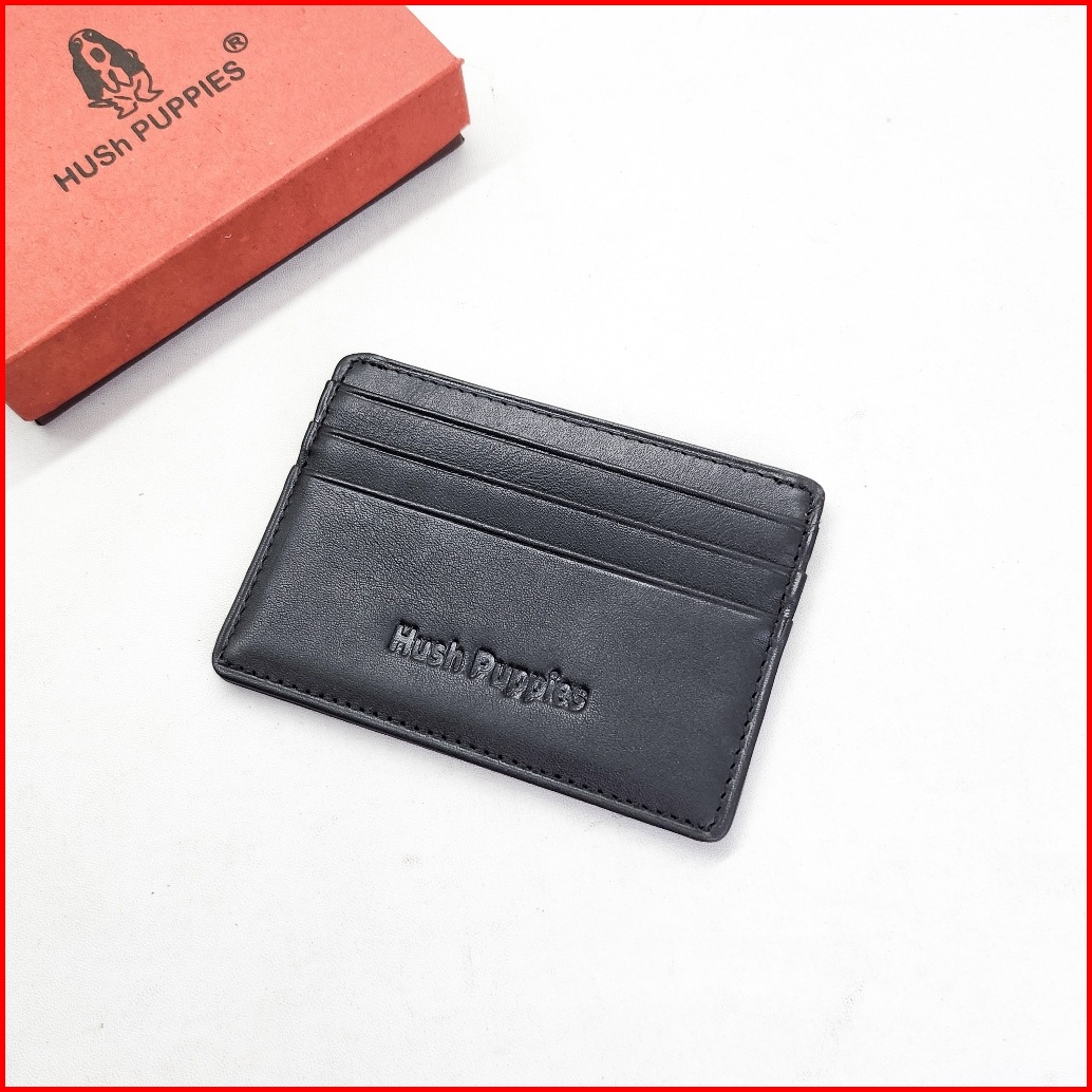 Dompet Kartu Slim Pria Kulit Asli Hush Puppies Card Holder Hitam 6 Slot Kartu Simpel Minimalis