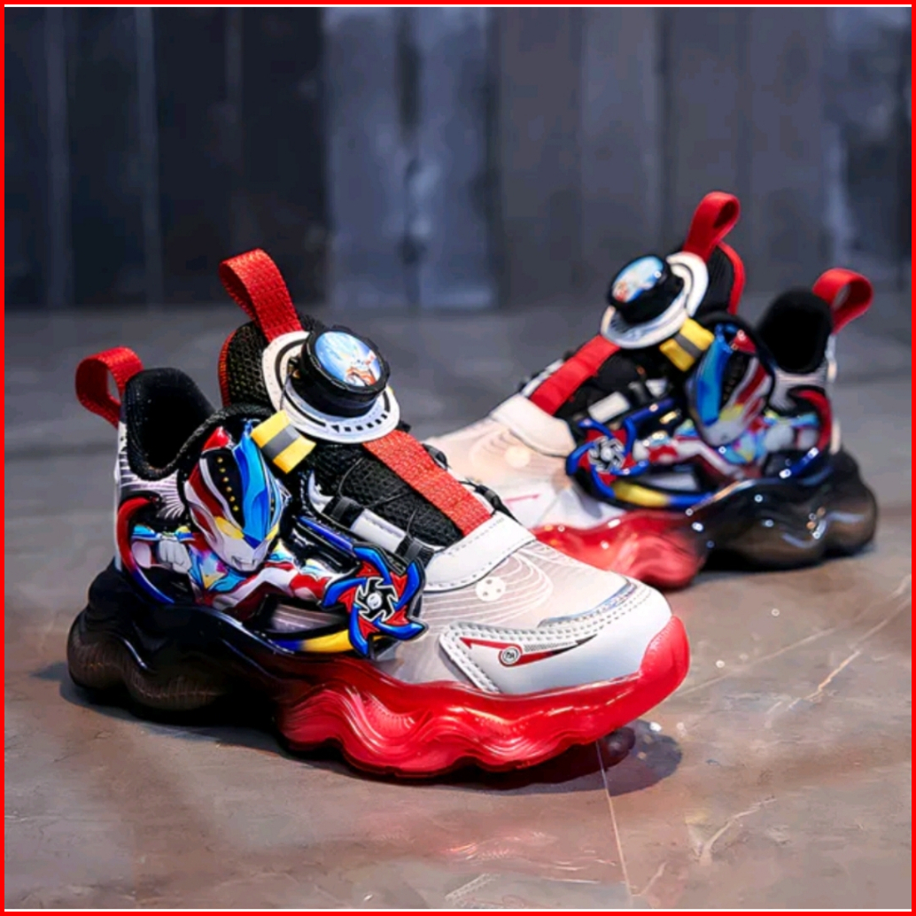 Sepatu Sneakers Ultraman Space Led Import Anak Cowok Keren 3-10 Tahun Size 24-35 Sepatu Sport Fashion Ultraman Shuriken