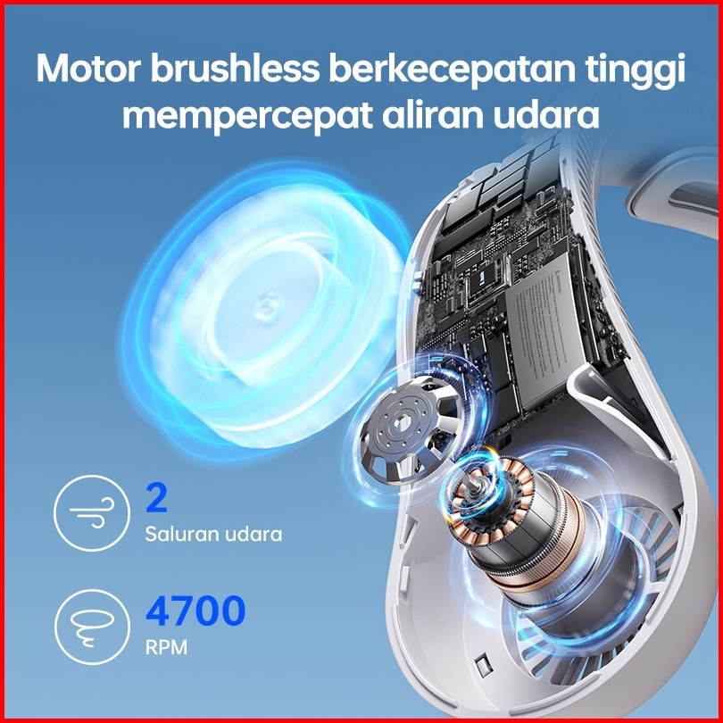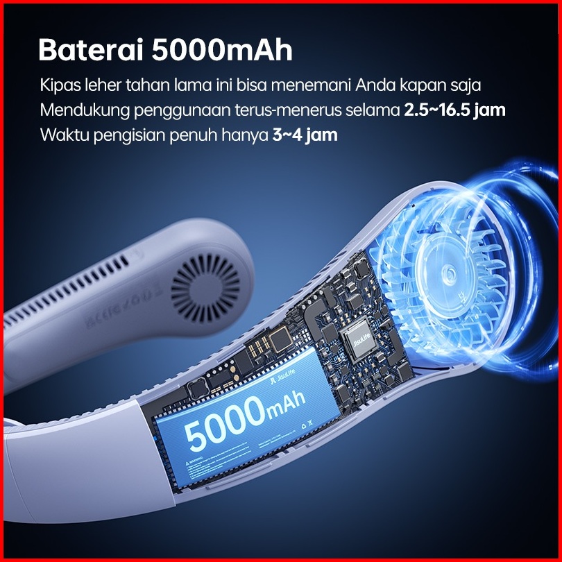Jisulife Kipas Leher Life4 Portable - Baterai Kapasitas Tinggi 5000mah Isi Ulang Usb Pengaturan Lima Kecepatan Kipas Gan