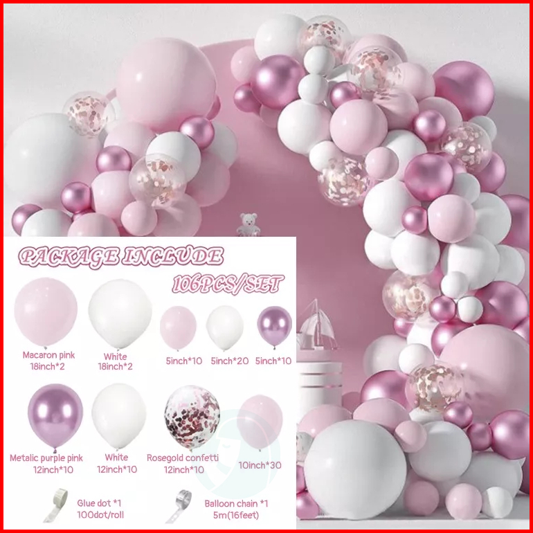 106pcs Merah Muda Balon Garland Kit Untuk Pesta Ulang Tahun Gadis Dekorasi Beruang Pesta Pernikahan