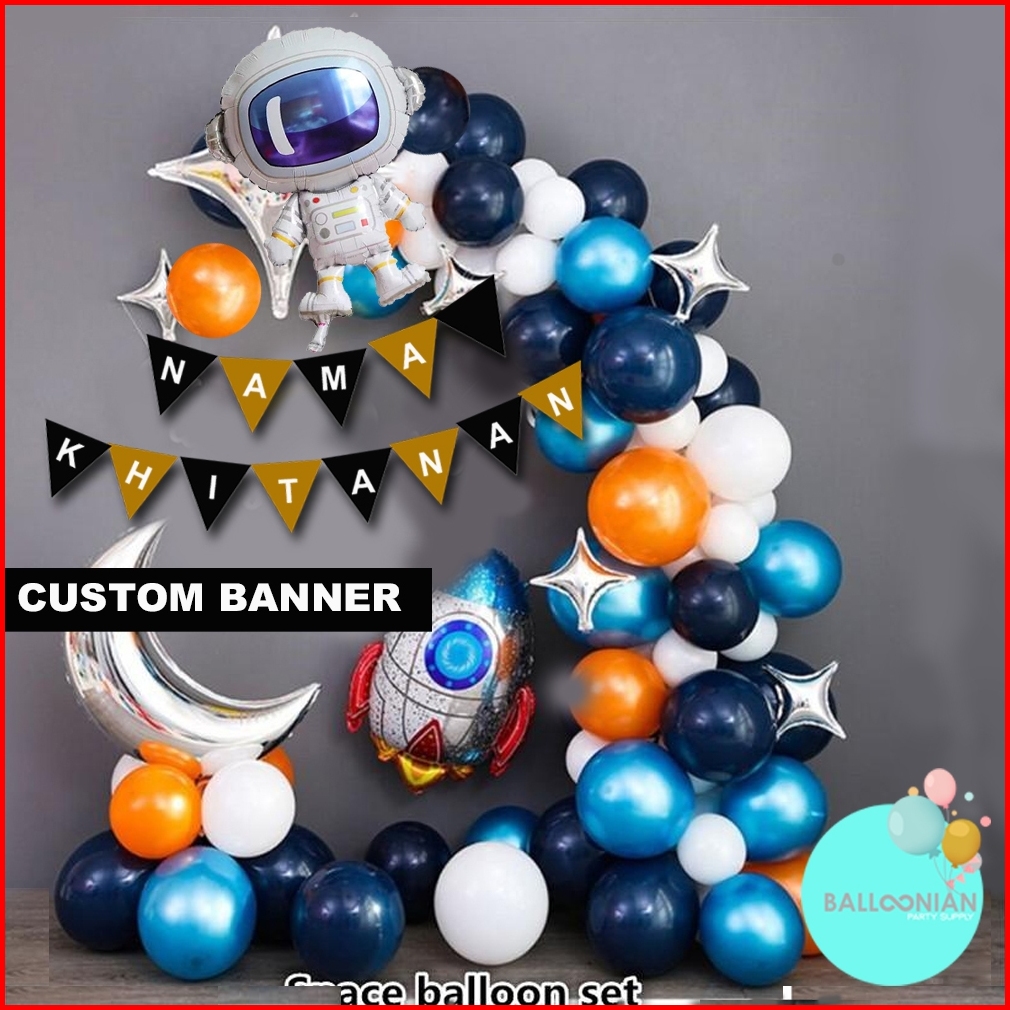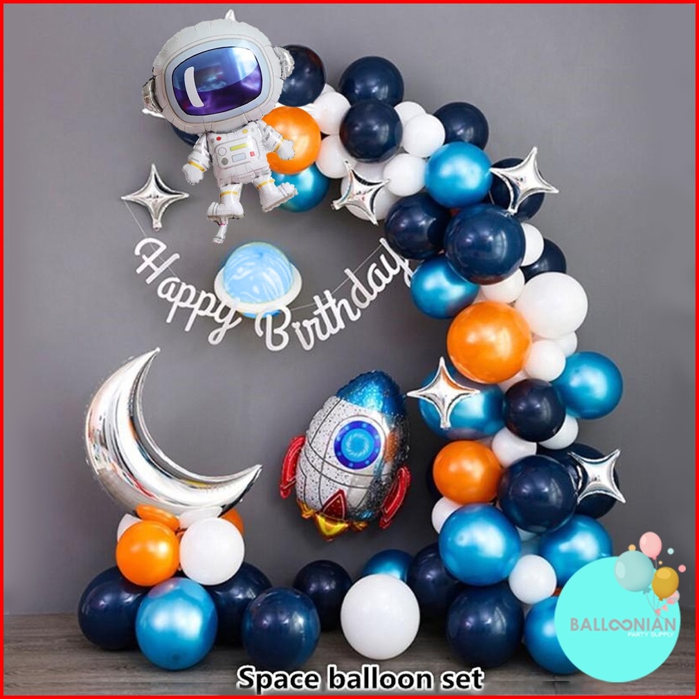 Space Midnight Blue Dekorasi Set Dekorasi Ulang Tahun Anak Astronot Balloon Foil Balon Foil Rocket