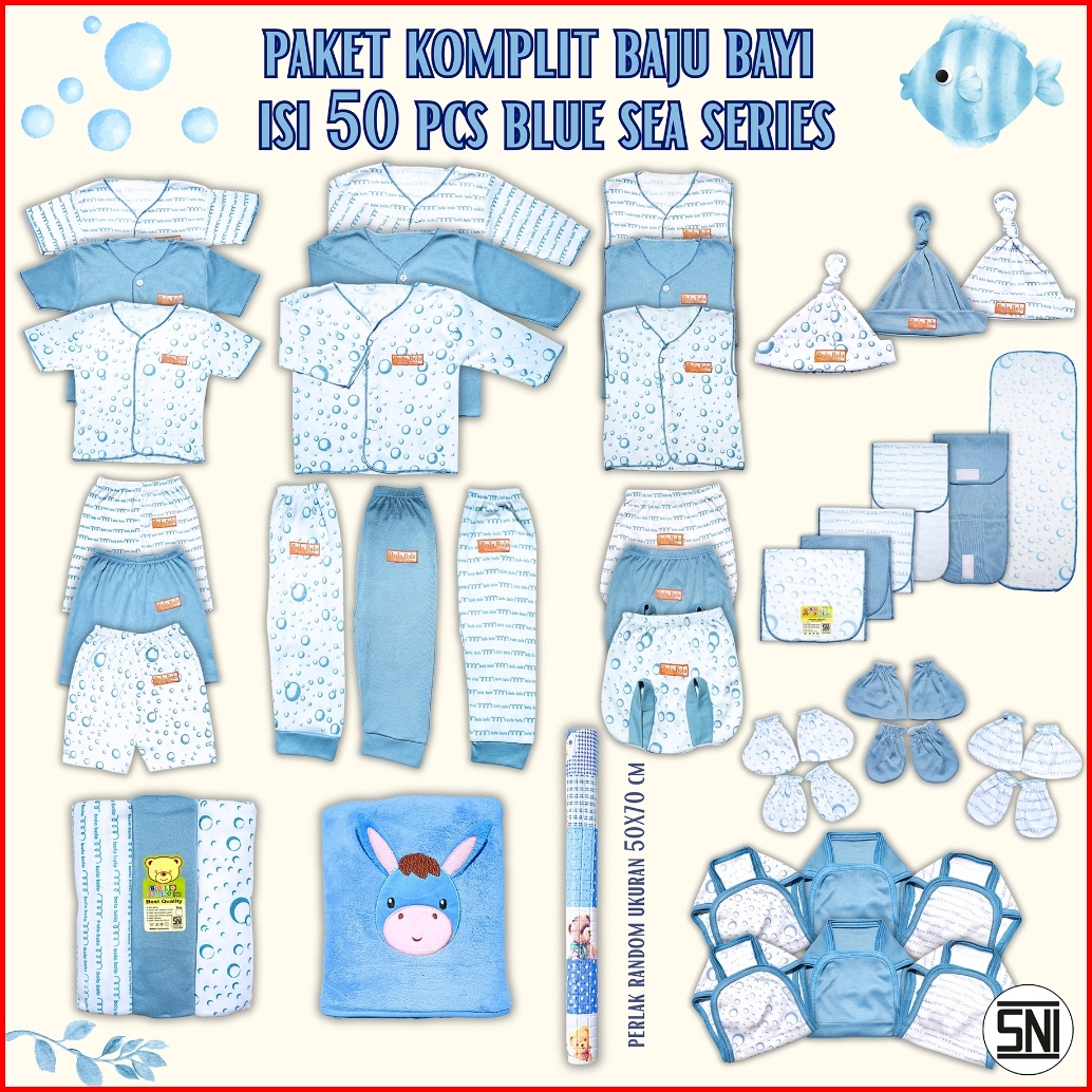 50 Pcs Paket Hemat Bundling Baju Bayi Baru Lahir Setelan Newborn 0 Sd 3 Bulan Serian Biru