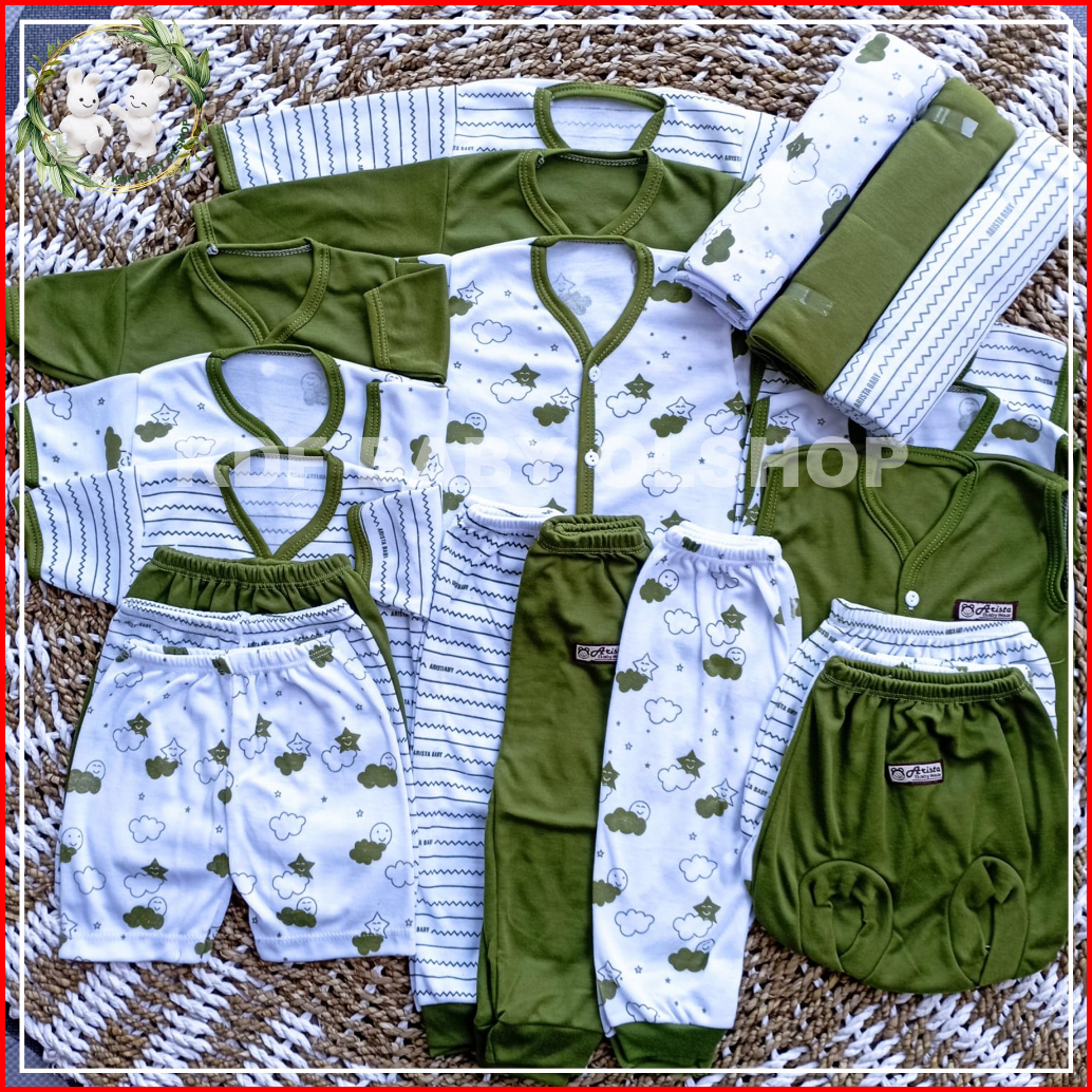 21 Pcs Paket Perlengkapan Bayi Baru Lahir Seri Hijau Olive 18 Pcs Baju Bayi Newboarn Set Baju Bayi Laki Laki Perempuan B