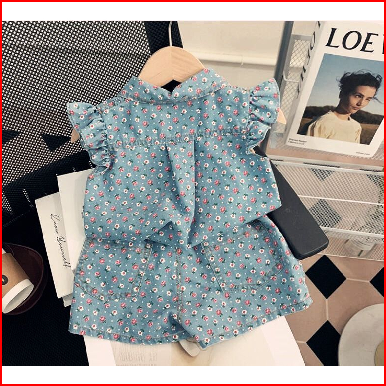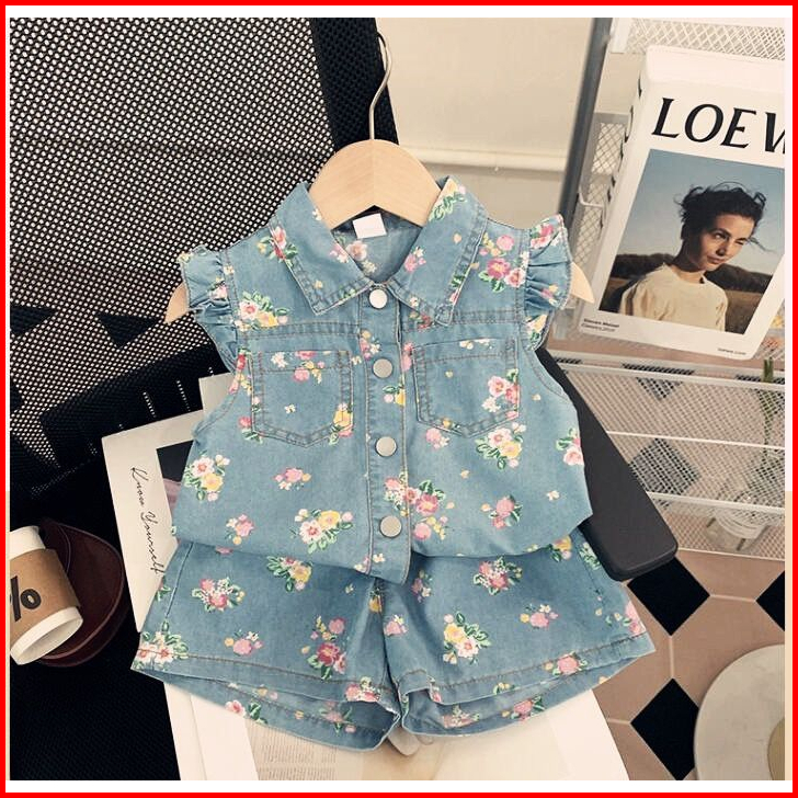 Loli-jkt Bs- 505 Setelan Anak Jeans Tebal Bunga 2 Model Size 100-140