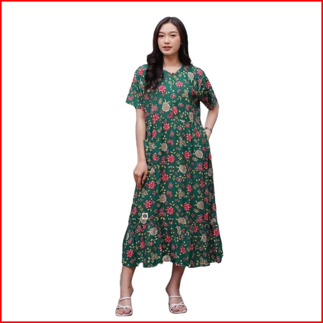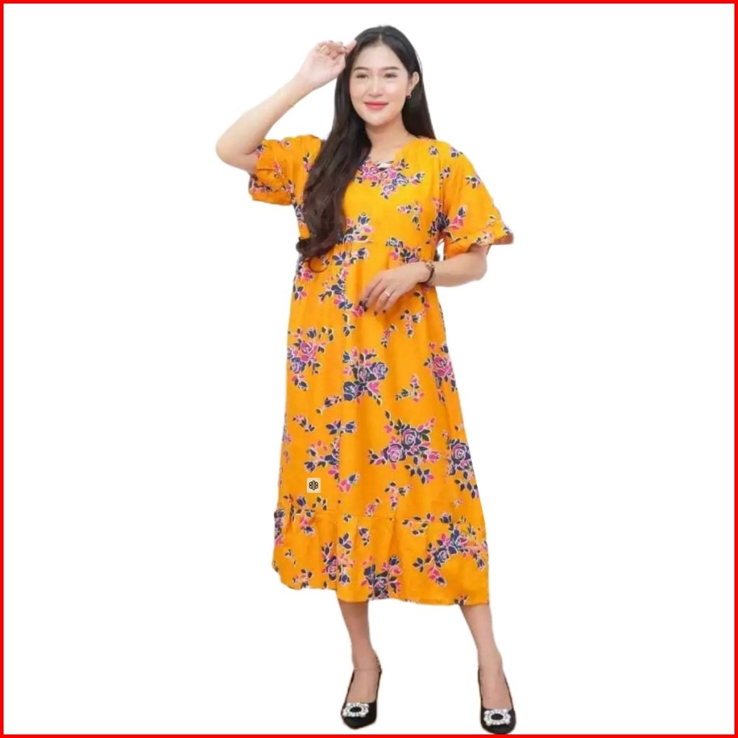 Disya.id Daster Rayon Lengan Pendek Motif Dahlia Panjang 118 Cm