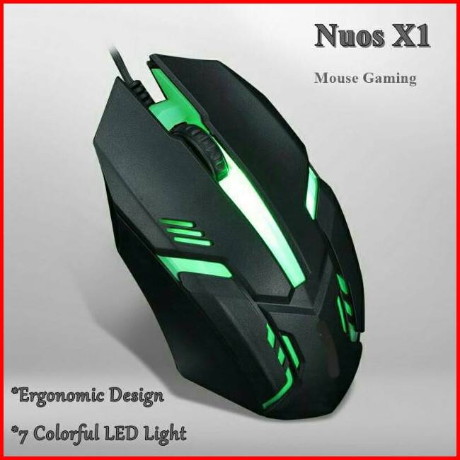Mouse Kabel Gaming Original Nuos Led X1 Cable Mouse Game Rgb Colorful 7 Led Light