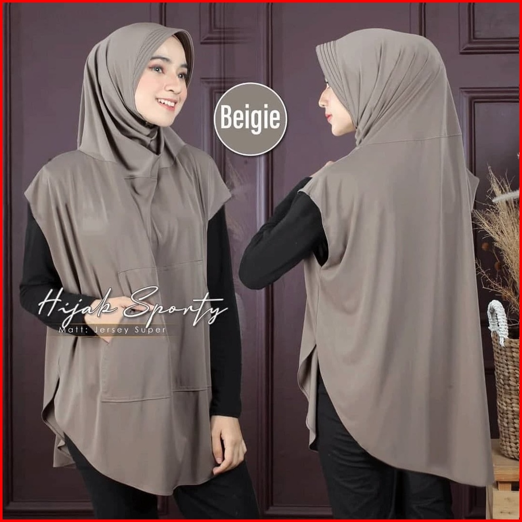 Falisha Saku Jilbab Khimar Hijab Sporty Lengan Saku Jersy Streach Kerudung Olahraga Jumbo